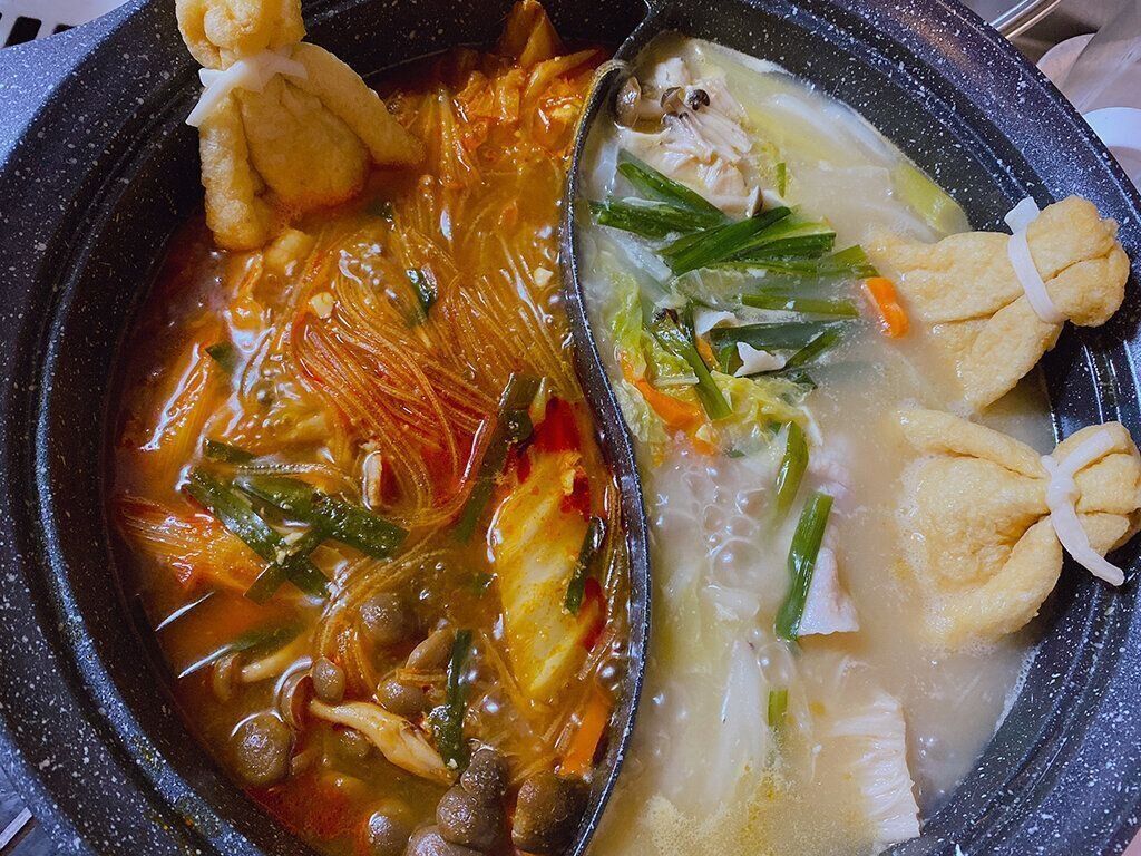 しみしみのはるさめ、しみしみの豆腐、豚バラと全ての具材との相性が良い旨辛鍋でした。