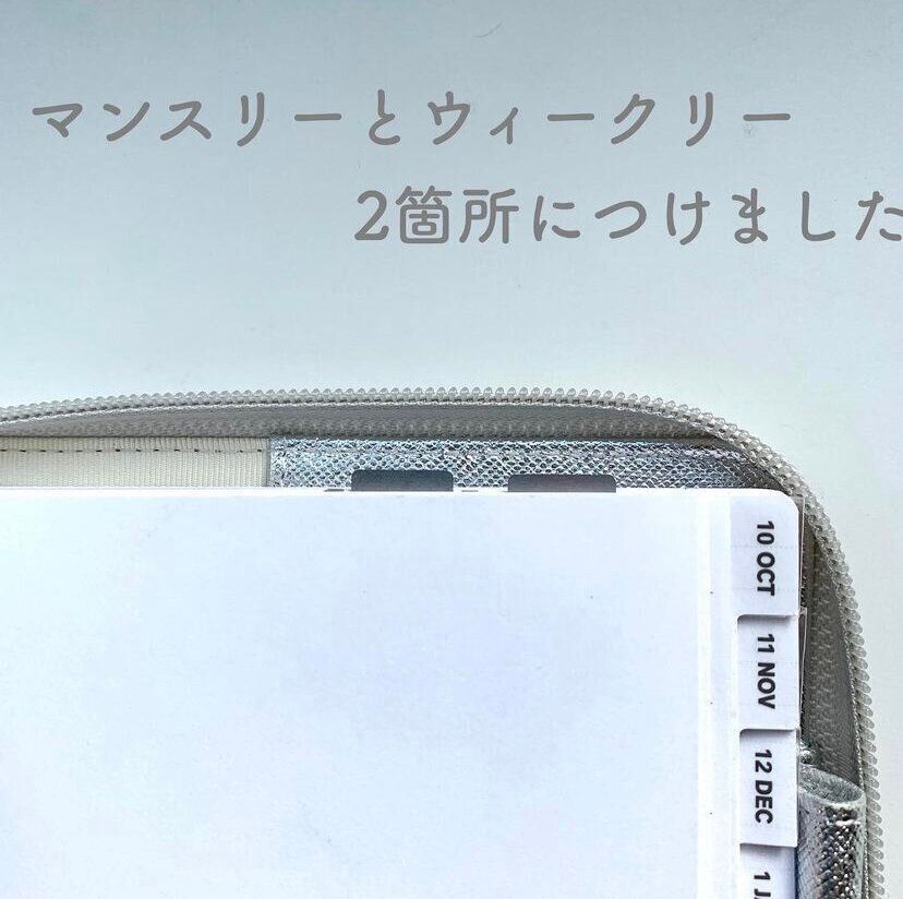 私は上部から手帳を開くことが多いので、上部のマンスリーとウィークリーにつけています。