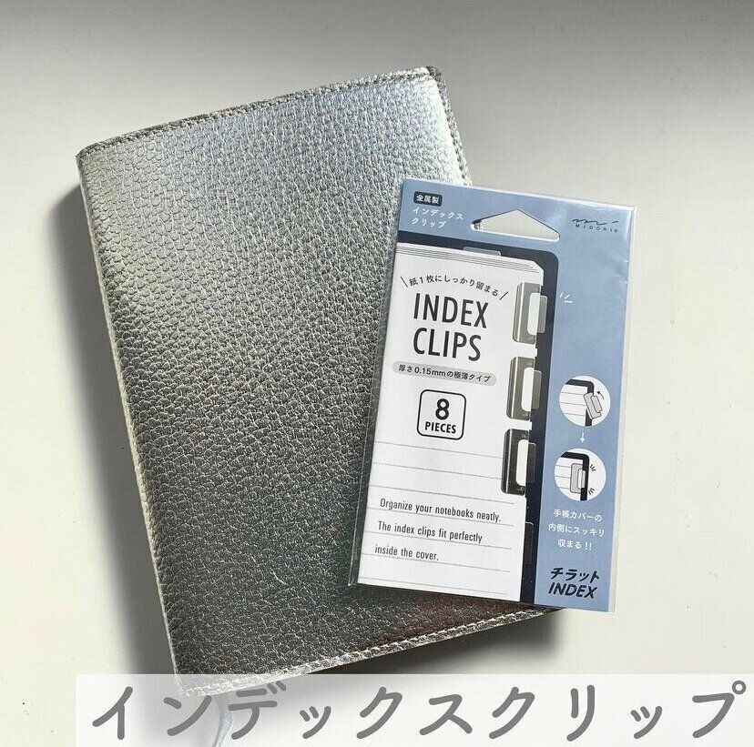 一般的なのは閉じると手帳からはみ出してしまうものが多く、使っているうちにとれてしまったり、破れてしまうことも。おすすめはこの「チラットINDEX」(MIDORI製)。こちらはスリムタイプなので、手帳からはみ出ない優れものです。