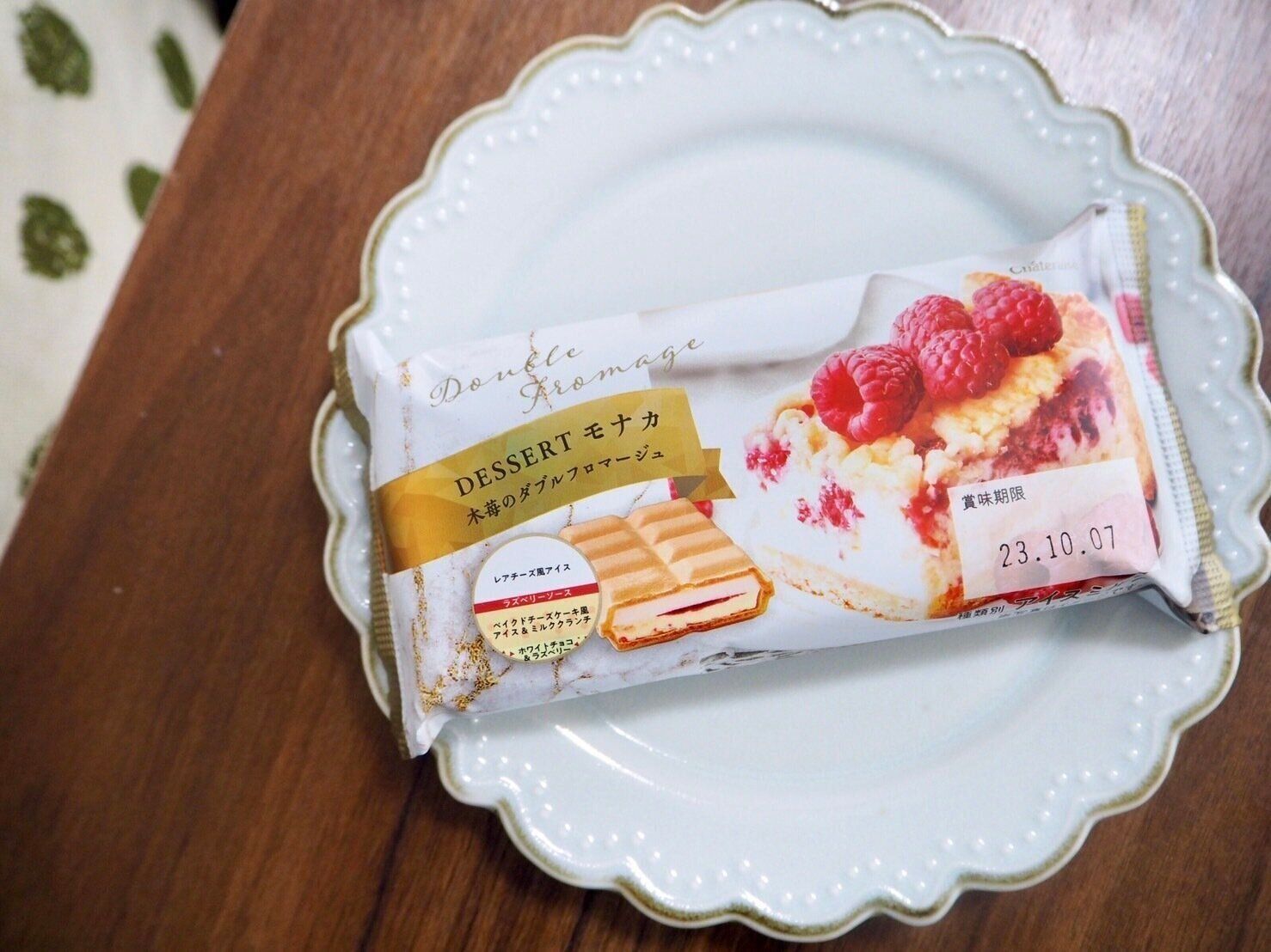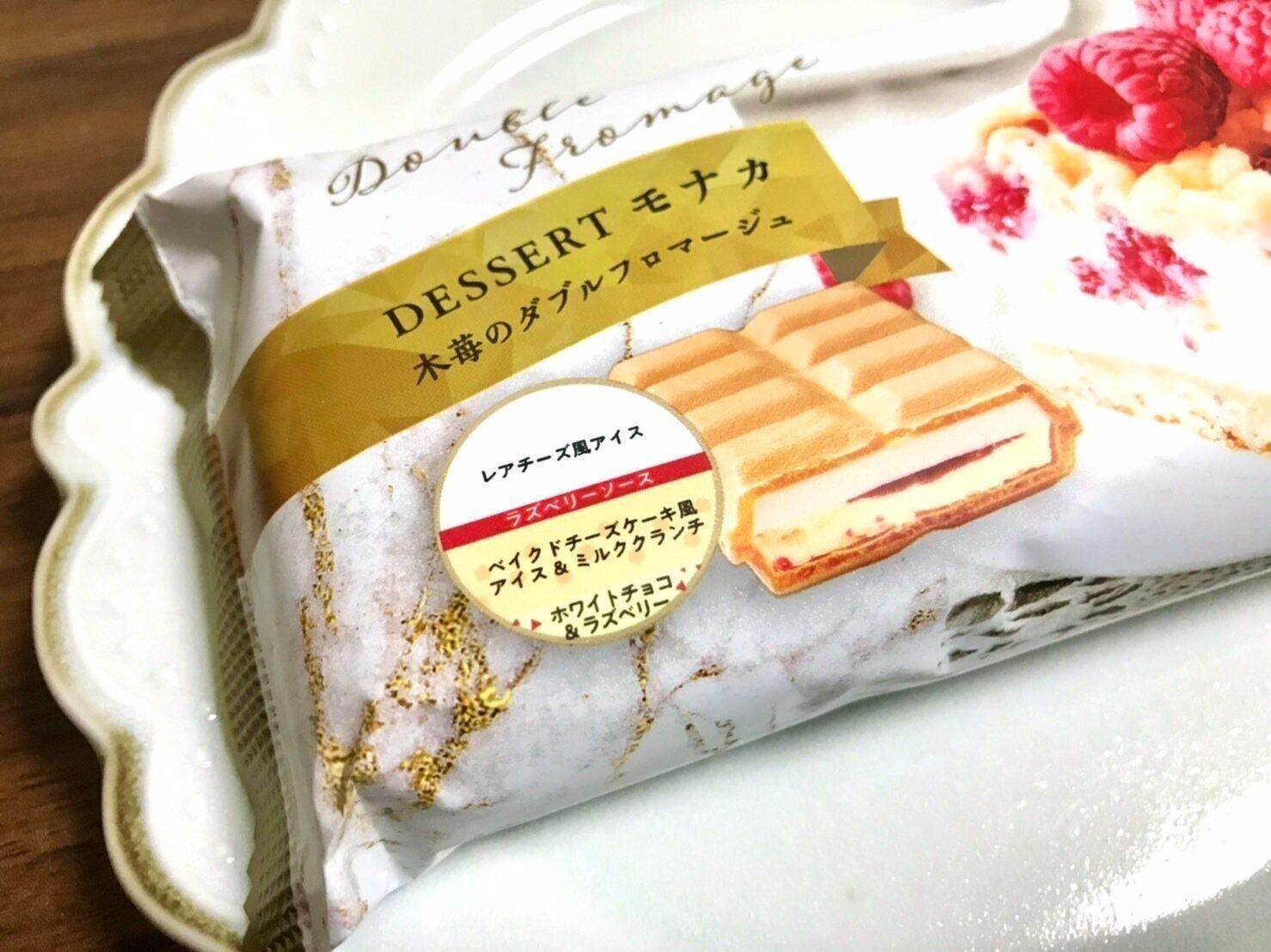 私が今まで食べた中で一番、「チーズケーキに近い!」と思えたのが、この商品です。大理石のようなパッケージから贅沢さが伝わる「DESSERTモナカ 木苺のダブルフロマージュ」。