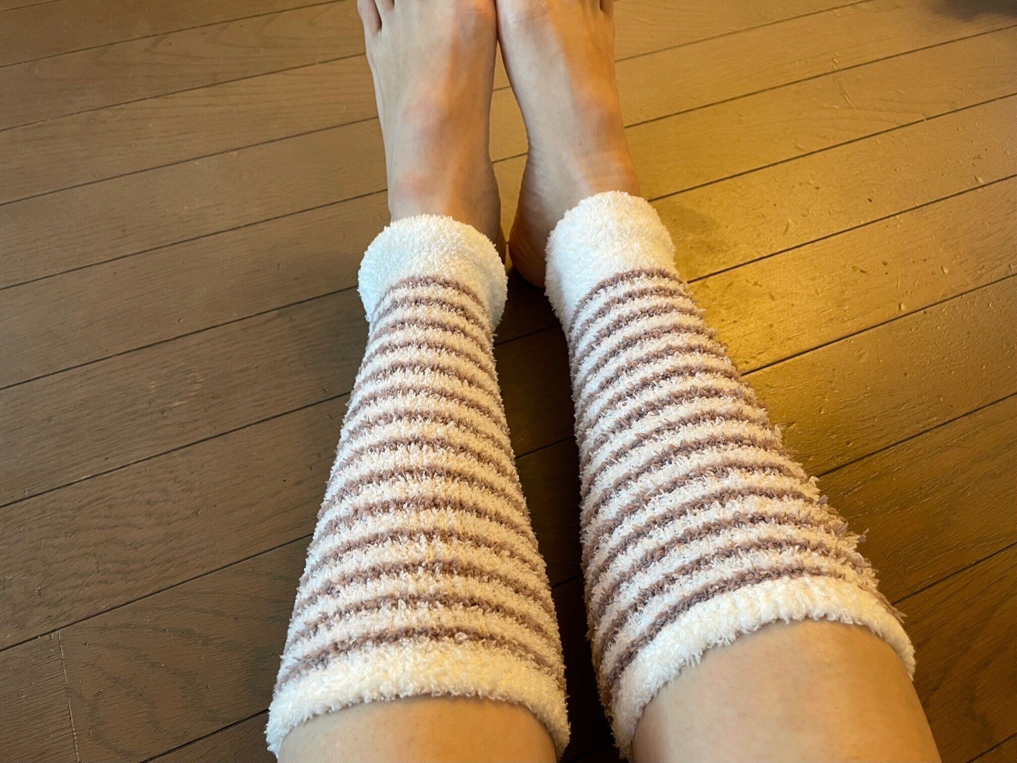 私のおすすめは、ダイソーの「ルームレッグウォーマー」もこもことかわいいだけでなく、締め付けもなく肌触りもいいのに1足110円!洗い替えなども揃えて毎日使えますよ。