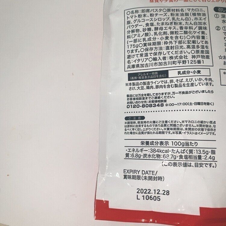 【パケ情報・栄養成分表・賞味期限】