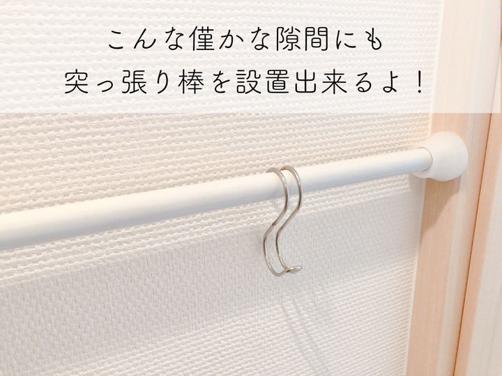 こんな僅かな隙間に設置したつっぱり棒だって、ズレを防止出来ちゃいますよ。