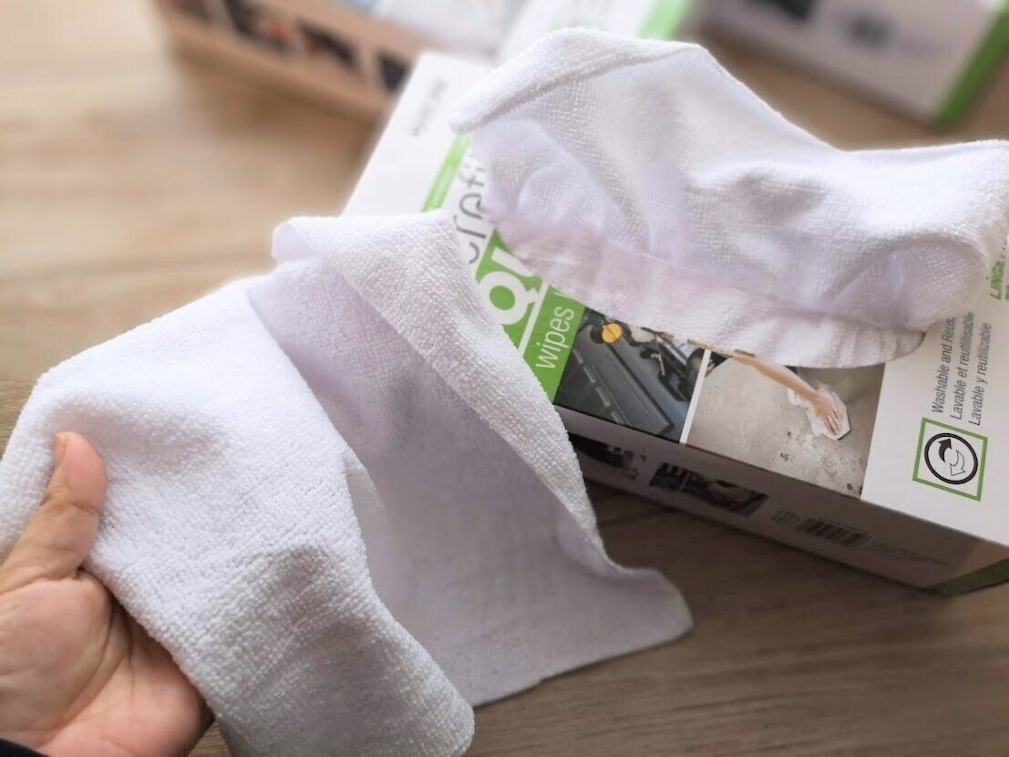 白いマイクロファイバーのふきんと言った感じで、クルマのケアからキッチン、掃除用にまで幅広く使うことができて、洗って繰り返し利用することもできます。
