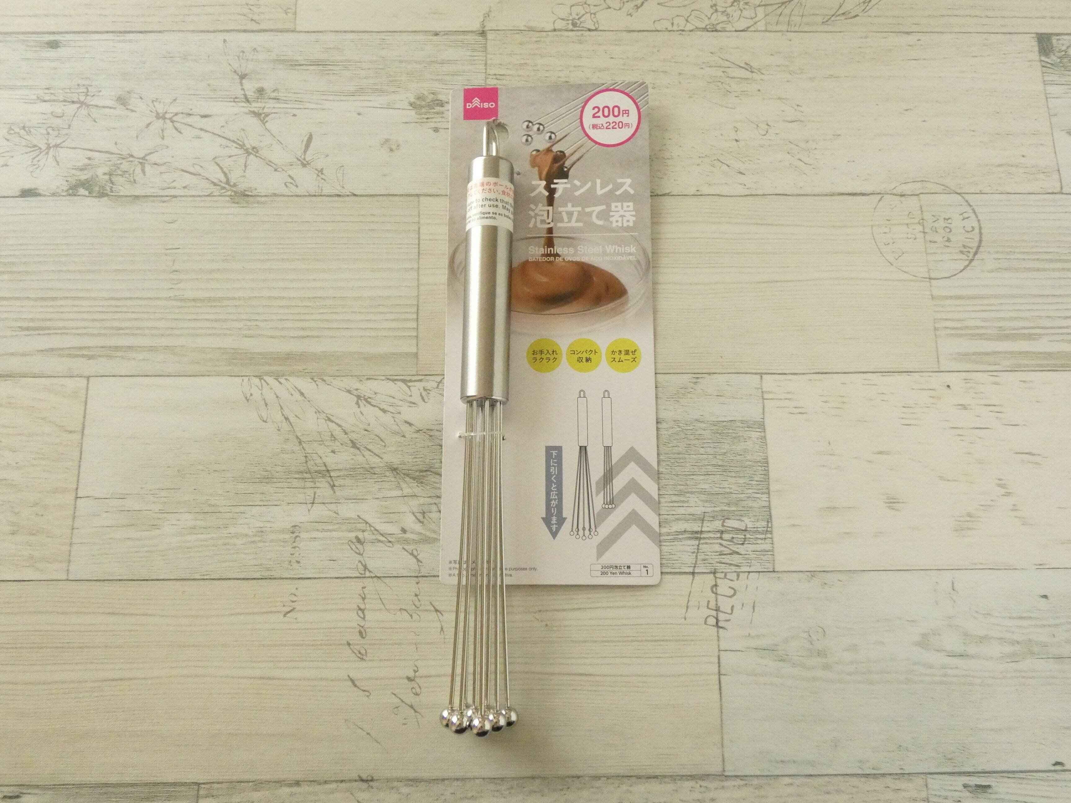 ステンレス泡立て器はダイソーで220円。