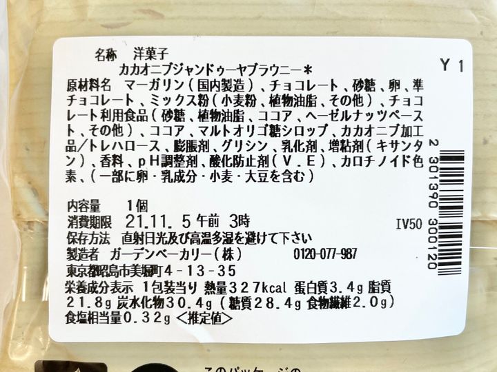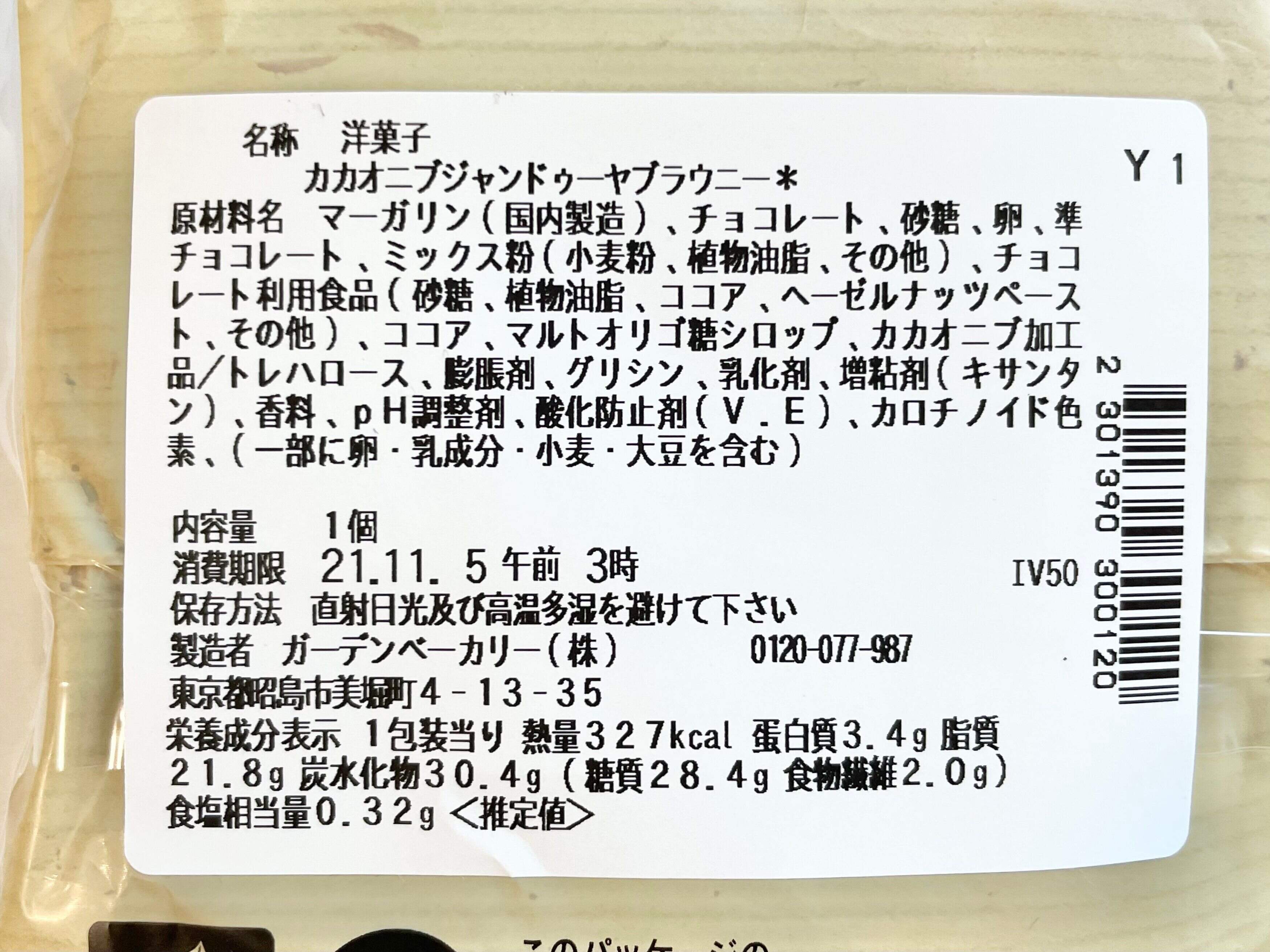 カカオニブとジャンドゥーヤのブラウニー 税込149円