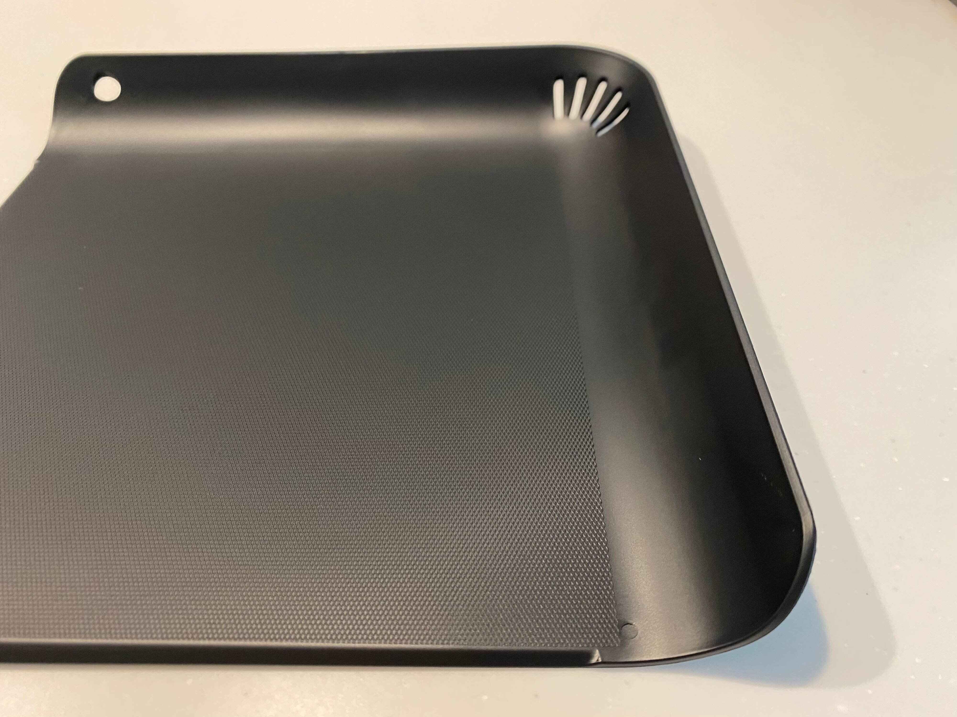 このように端が立ち上がっているので、切ったものがまな板から落ちてしまうことが圧倒的に少なくなっています。