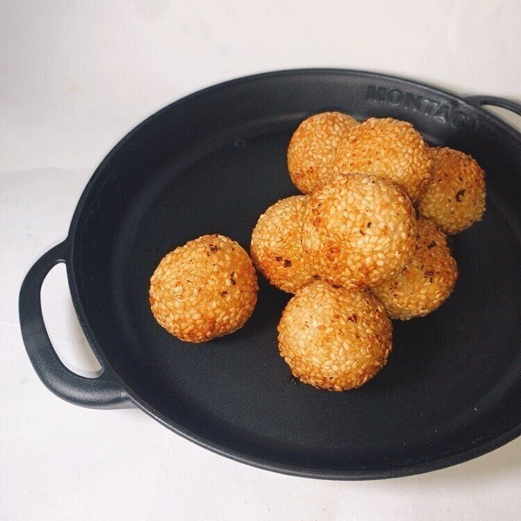 揚げたてのごま団子を