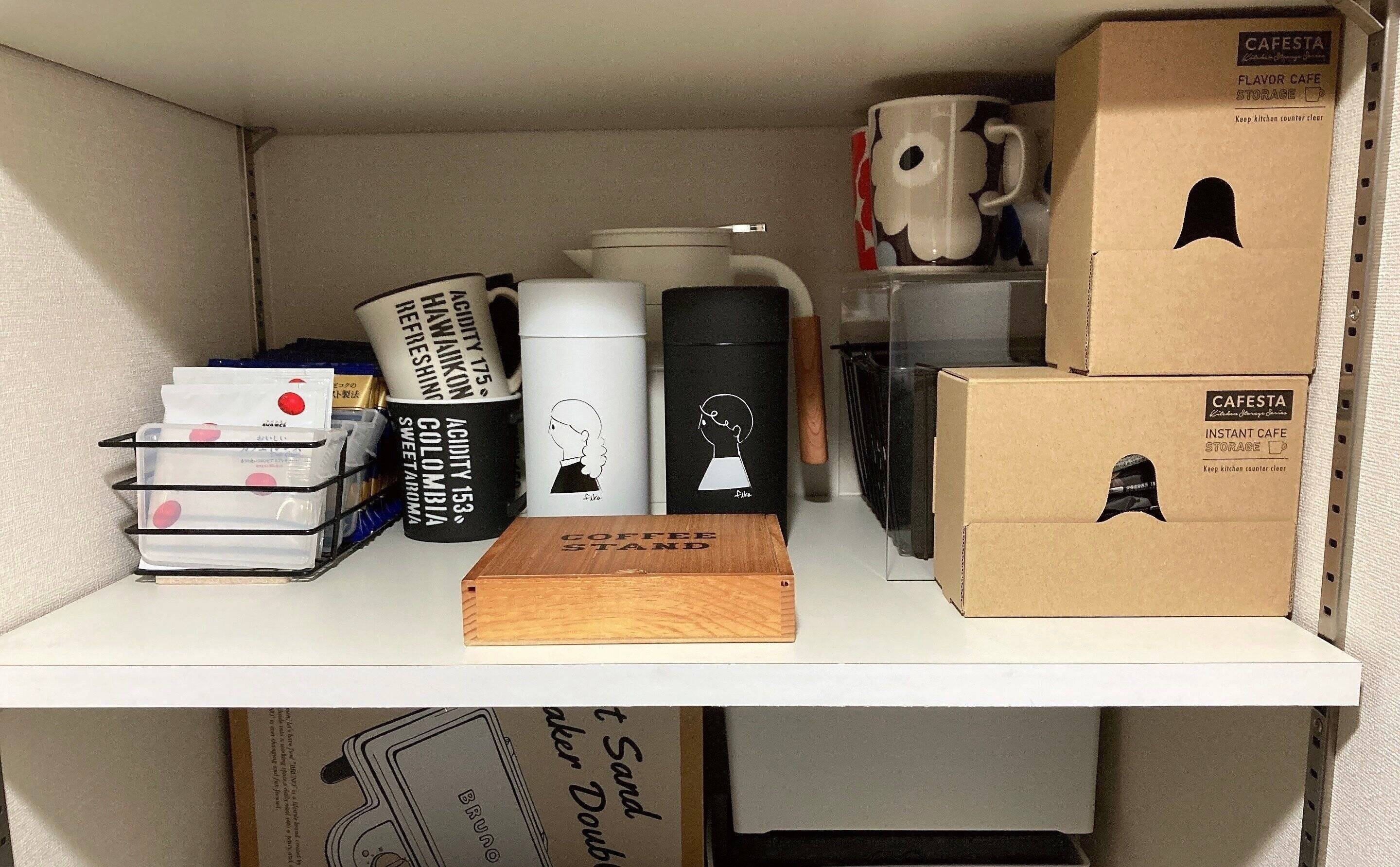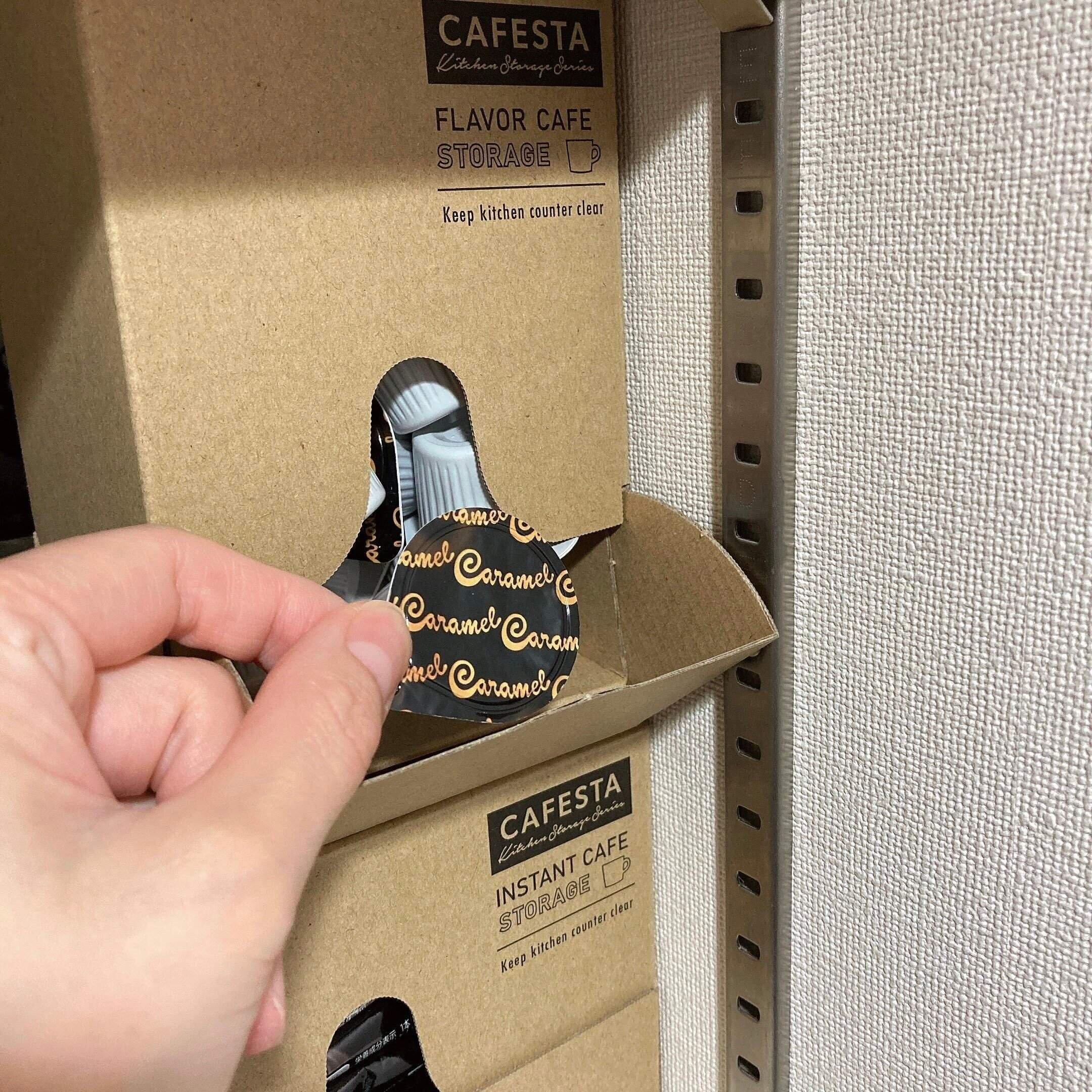 おうちカフェに便利な、インスタントコーヒーなどのスティックや濃縮ポーション。素敵に収納しておうちカフェをオープンしてみてはいかがでしょうか。