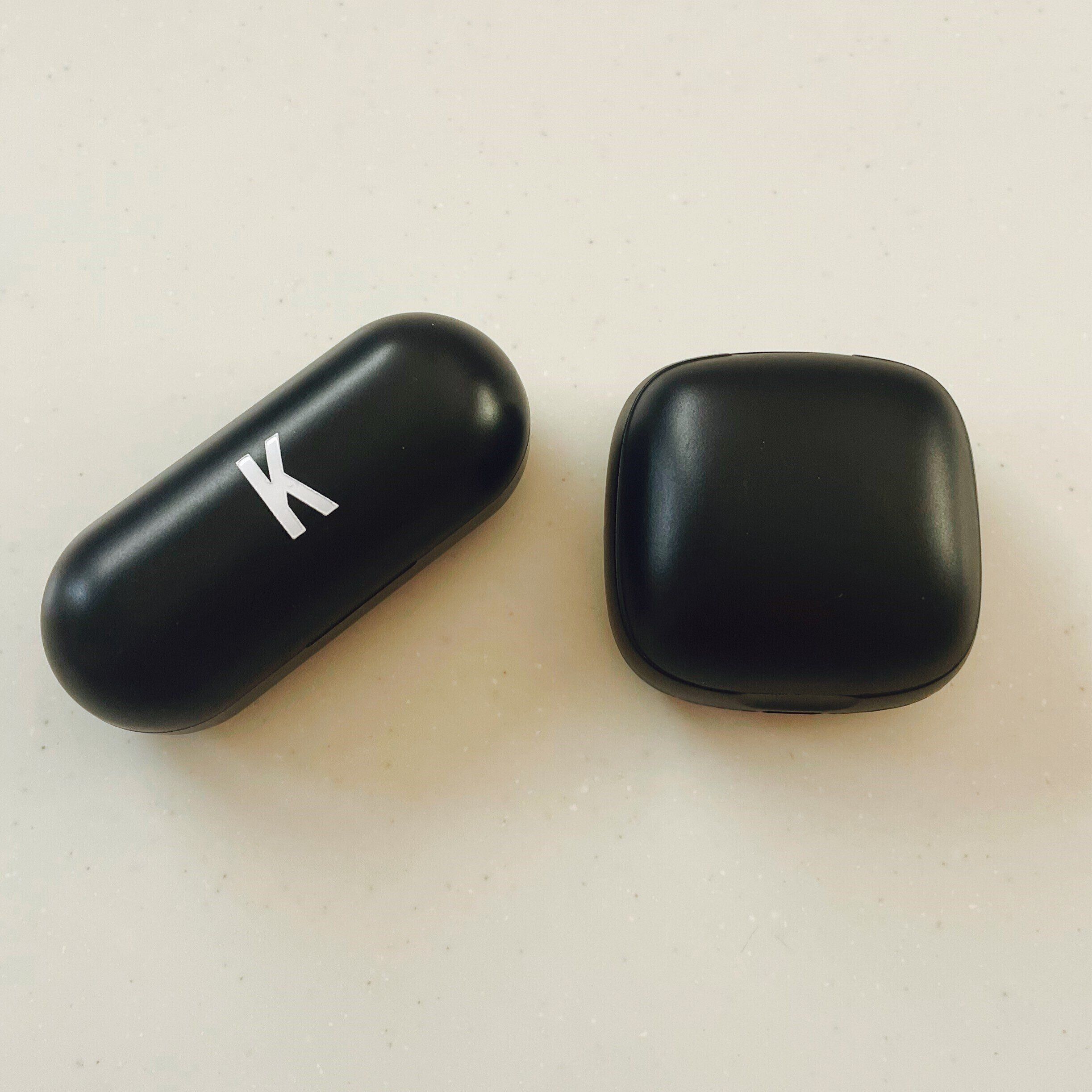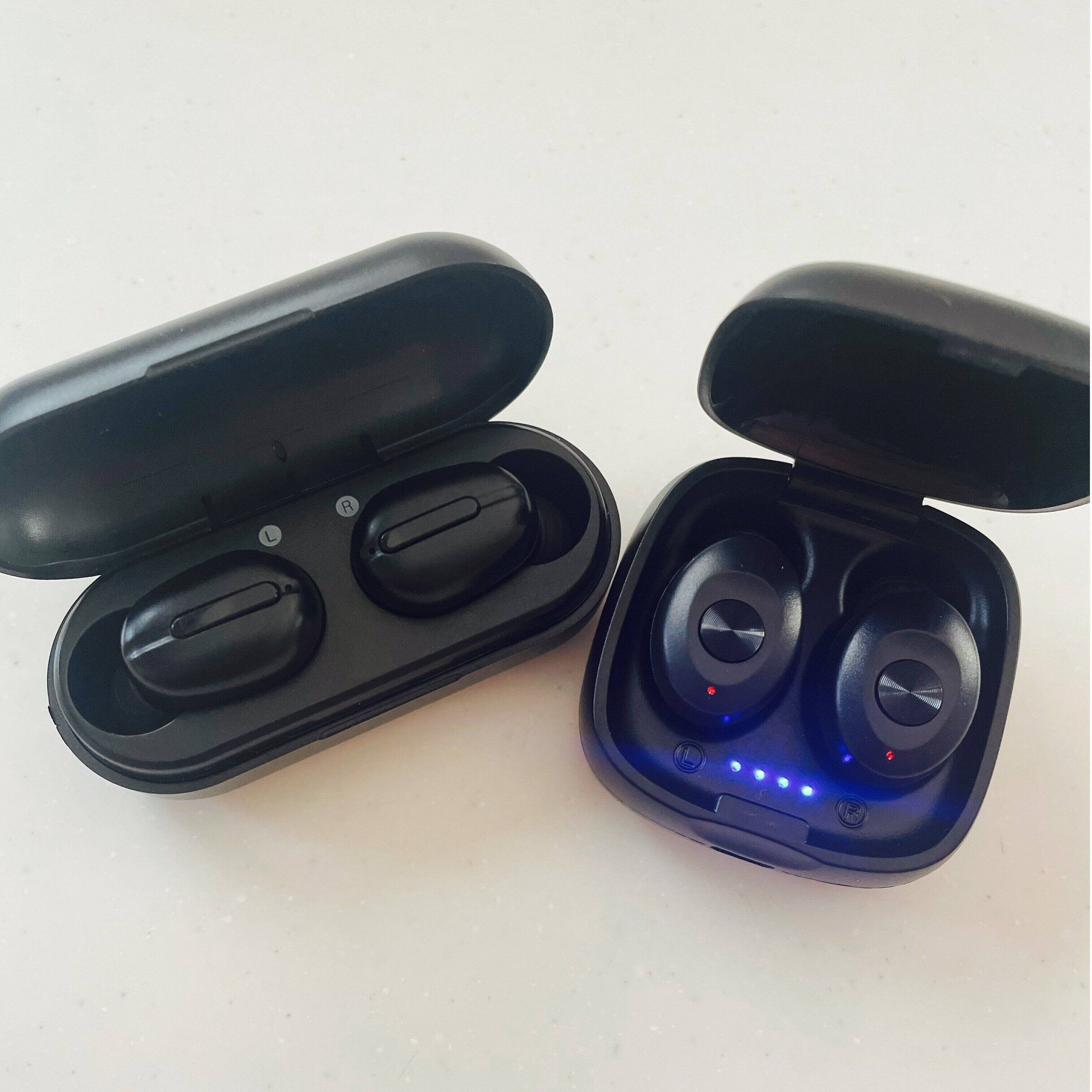左が私が愛用中の前回発売されたワイヤレスイヤホン、右が今回発売になったワイヤレスイヤホンです。