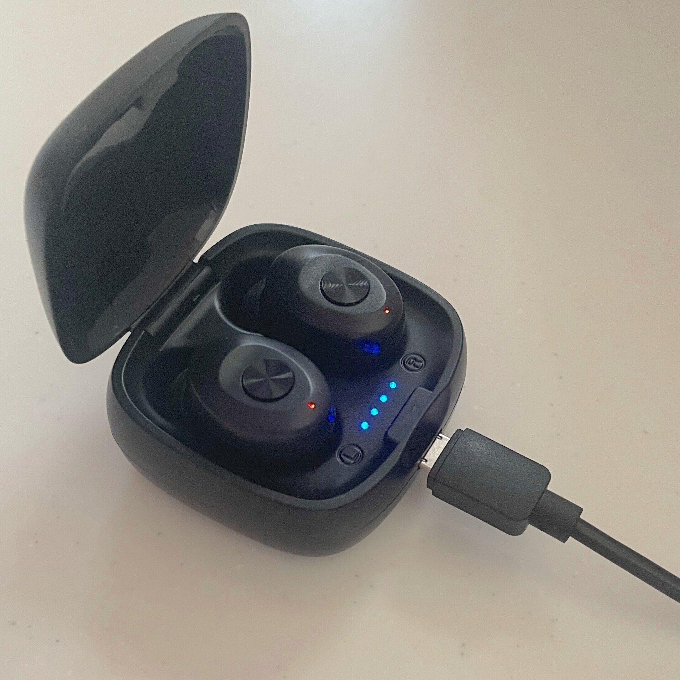 イヤホンの充電時間は1~1.5時間で、充電ケースは1回の充電でイヤホンを2~2.5回充電可能。