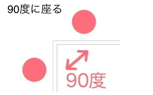 子どもとの会話におススメなのは、「斜めに座る」です。上の絵のような、90度の位置をイメージしてください。