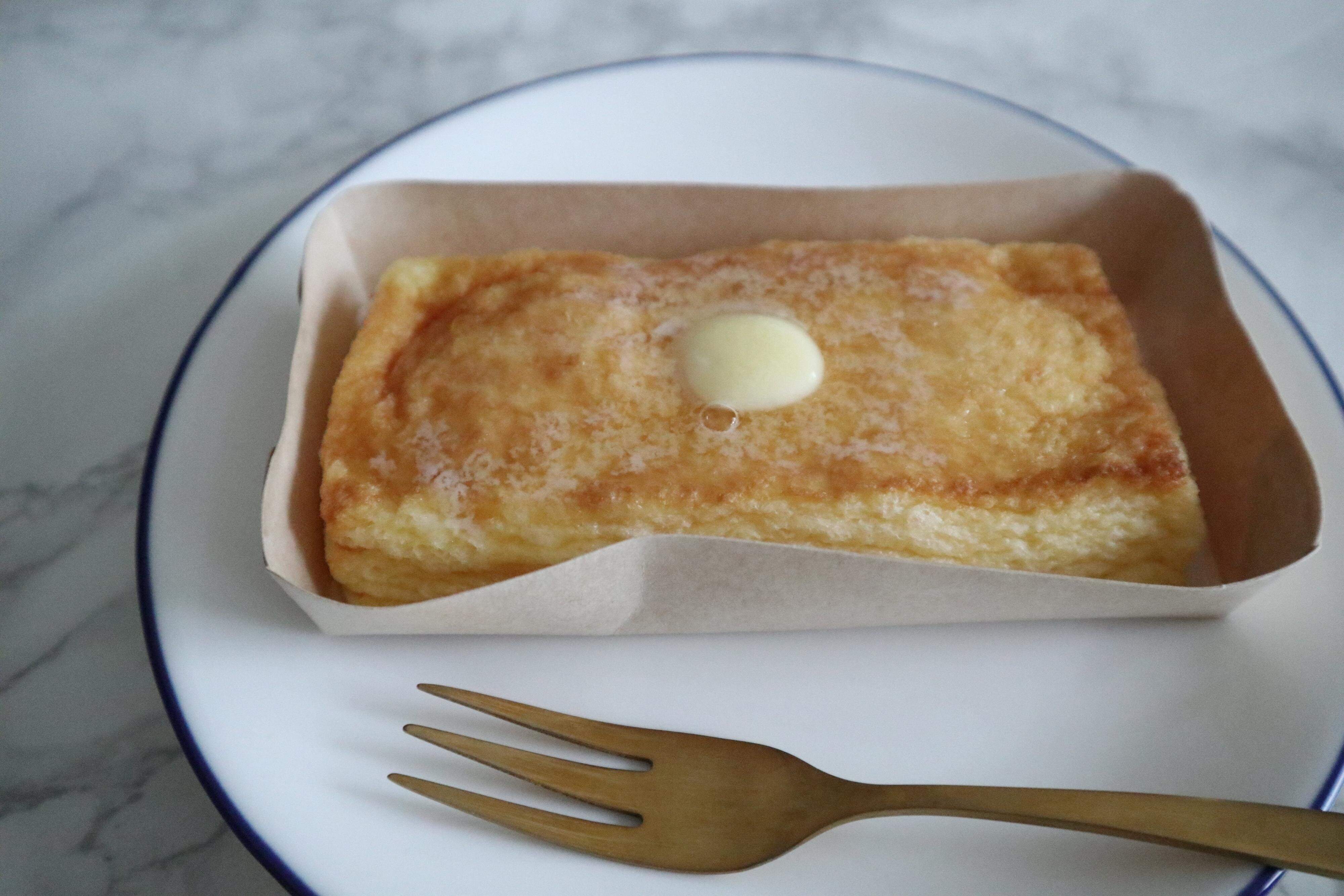 ぷるんっとした食感で口の中に入れるととろけます。食事系のフレンチトーストなので、甘いのが苦手な人や朝食にもおすすめです。至福のひと時を過ごせます。