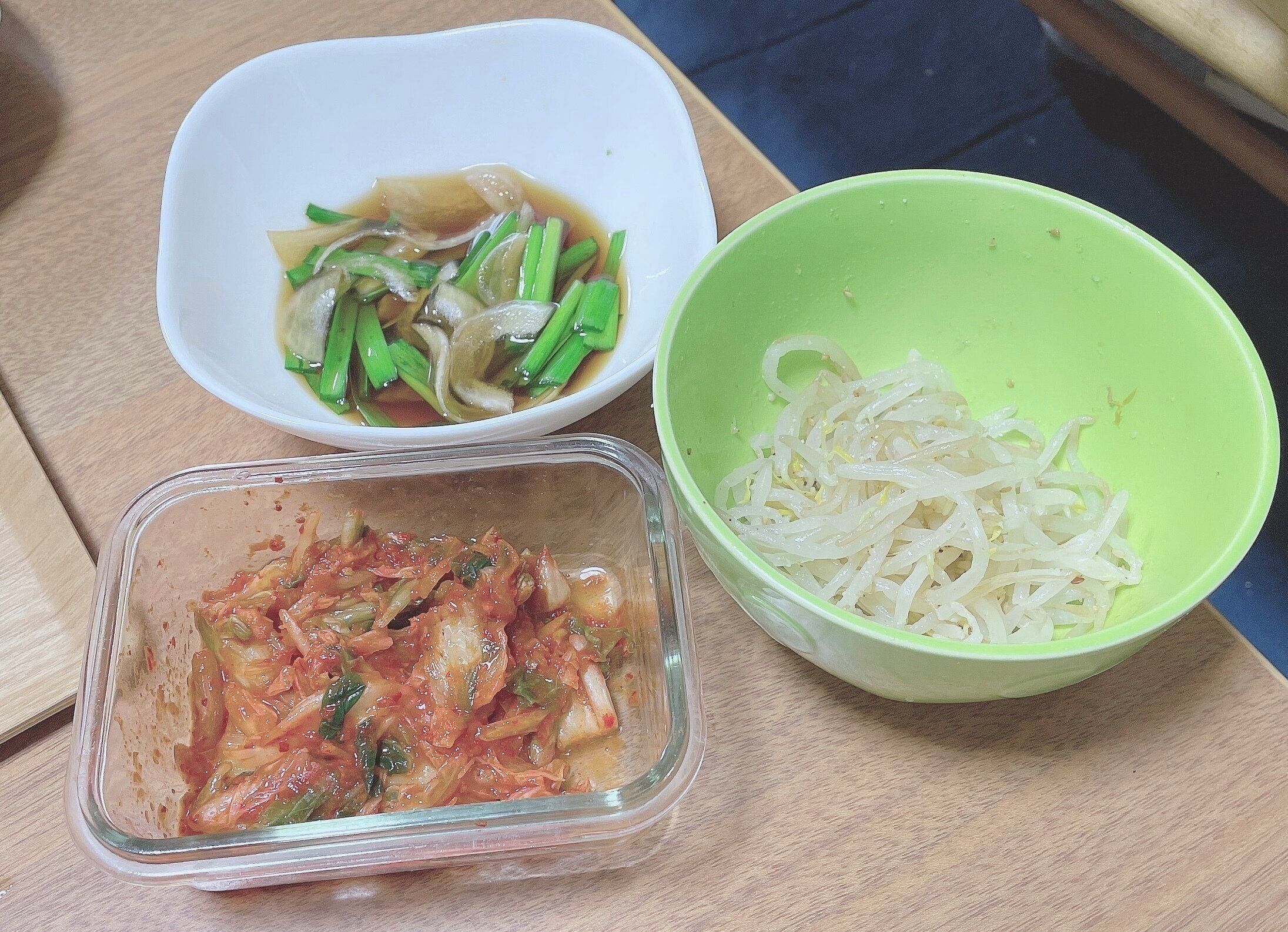 意識的に野菜をとるために野菜のナムルを一品用意します。箸休めとしてもピッタリです。わが家では子どもたちが好きなもやしナムルをつくることが多いです。