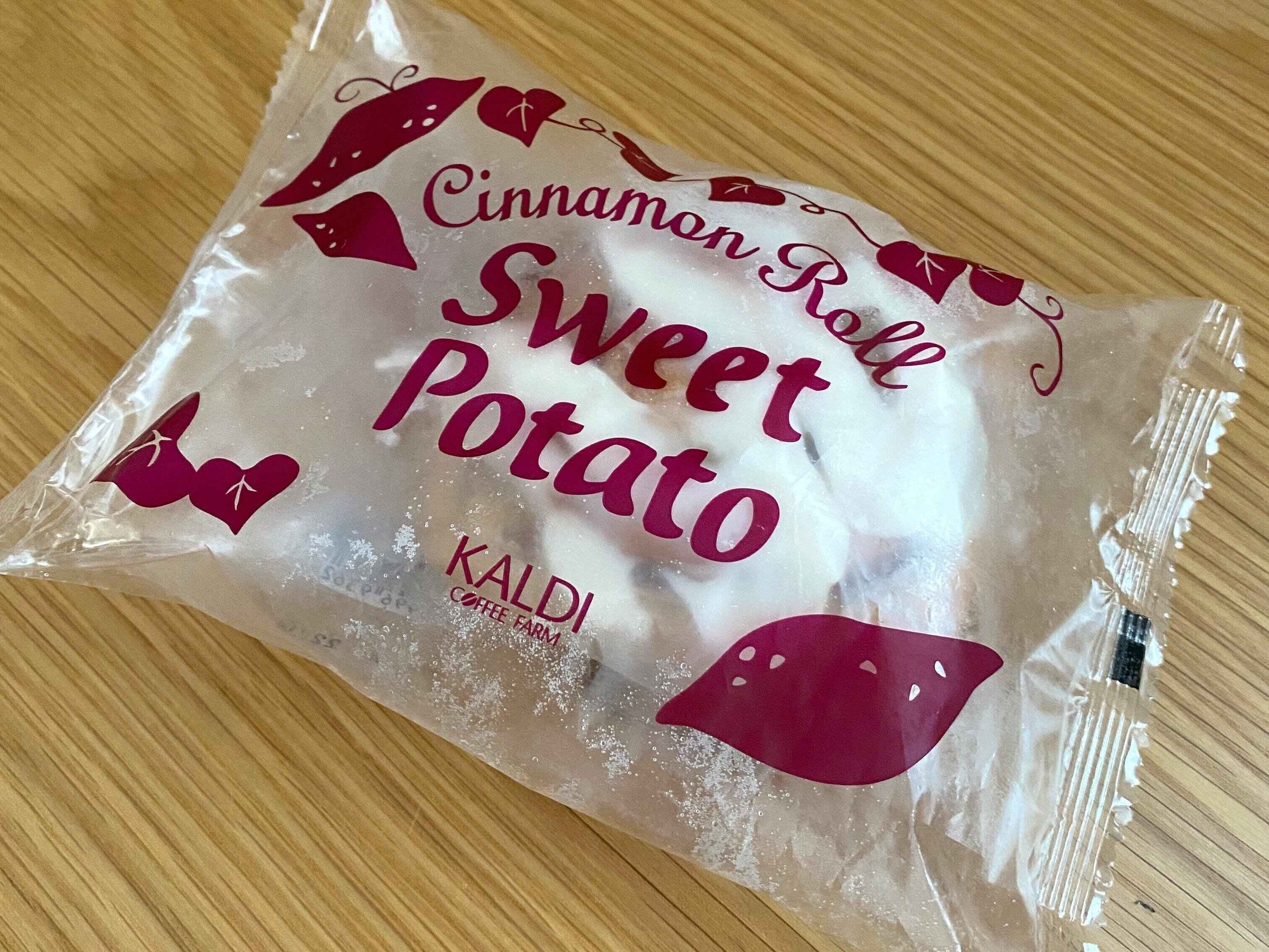 カルディの新商品チェックをするためにお店に行くと、冷凍コーナーで大人気の【シナモンロール】から、新作の【シナモンロールスイートポテト】が登場しているのを見つけました。