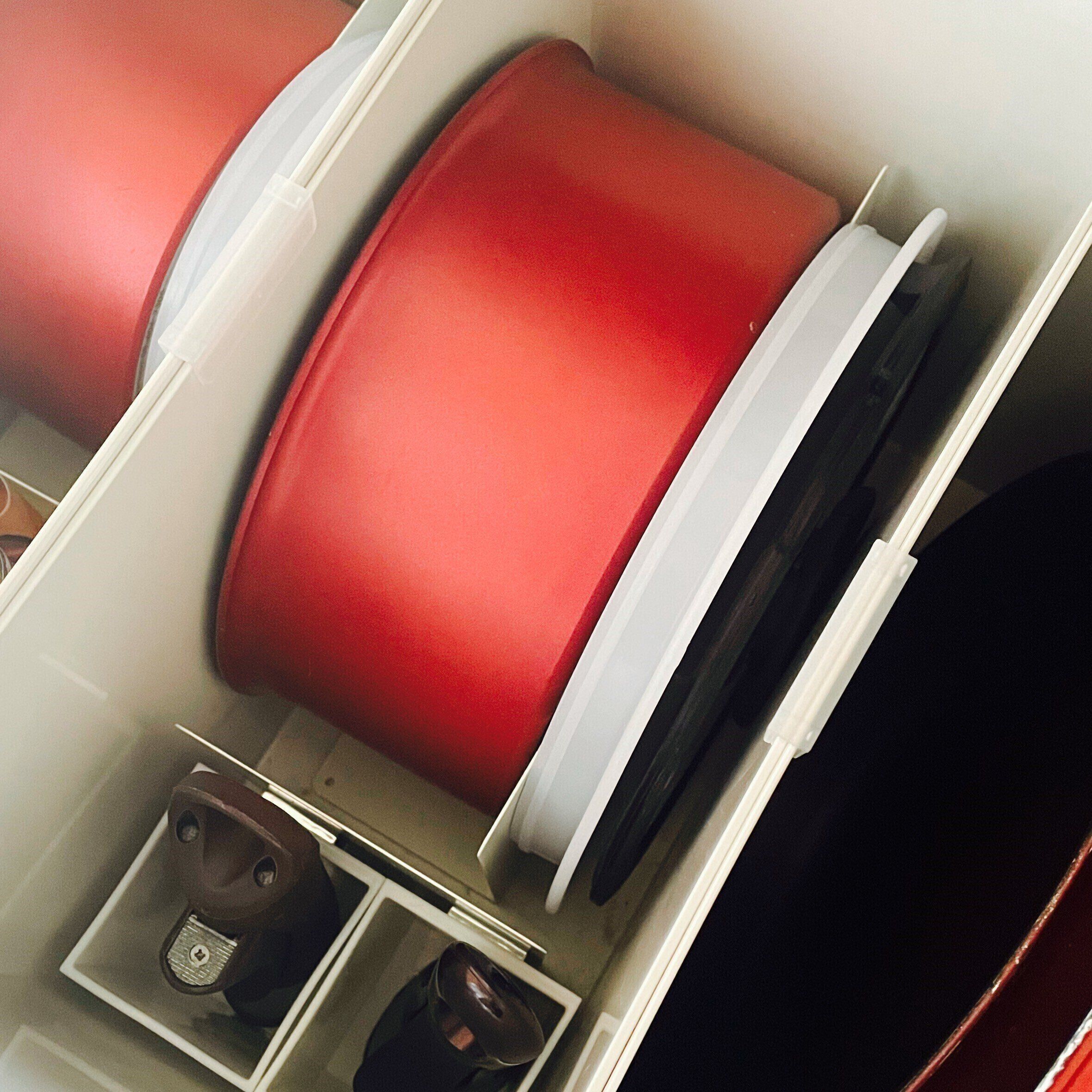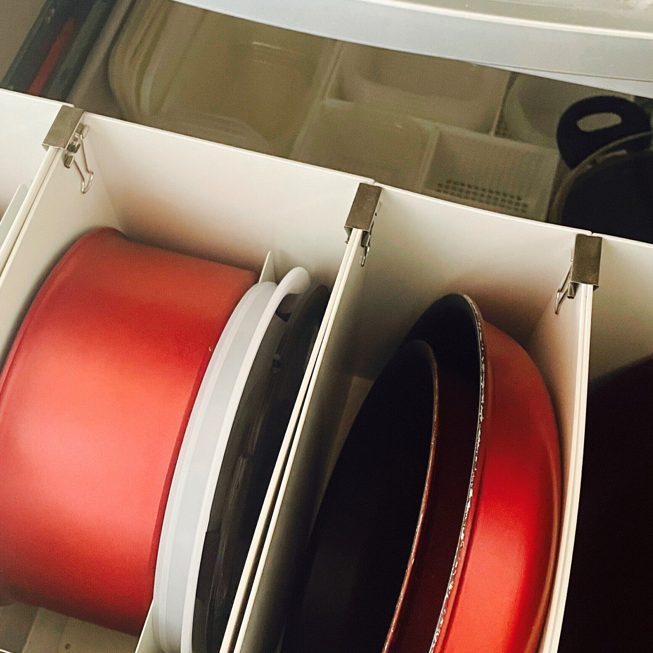 ダブルクリップを使ってファイルボックス同士をはさむことでズレ防止をしていたのですが、ファイルの幅よりクリップ幅が大きいのでフライパンを取り出す際に当たるなどして傷がつくのがイヤだったんです…。