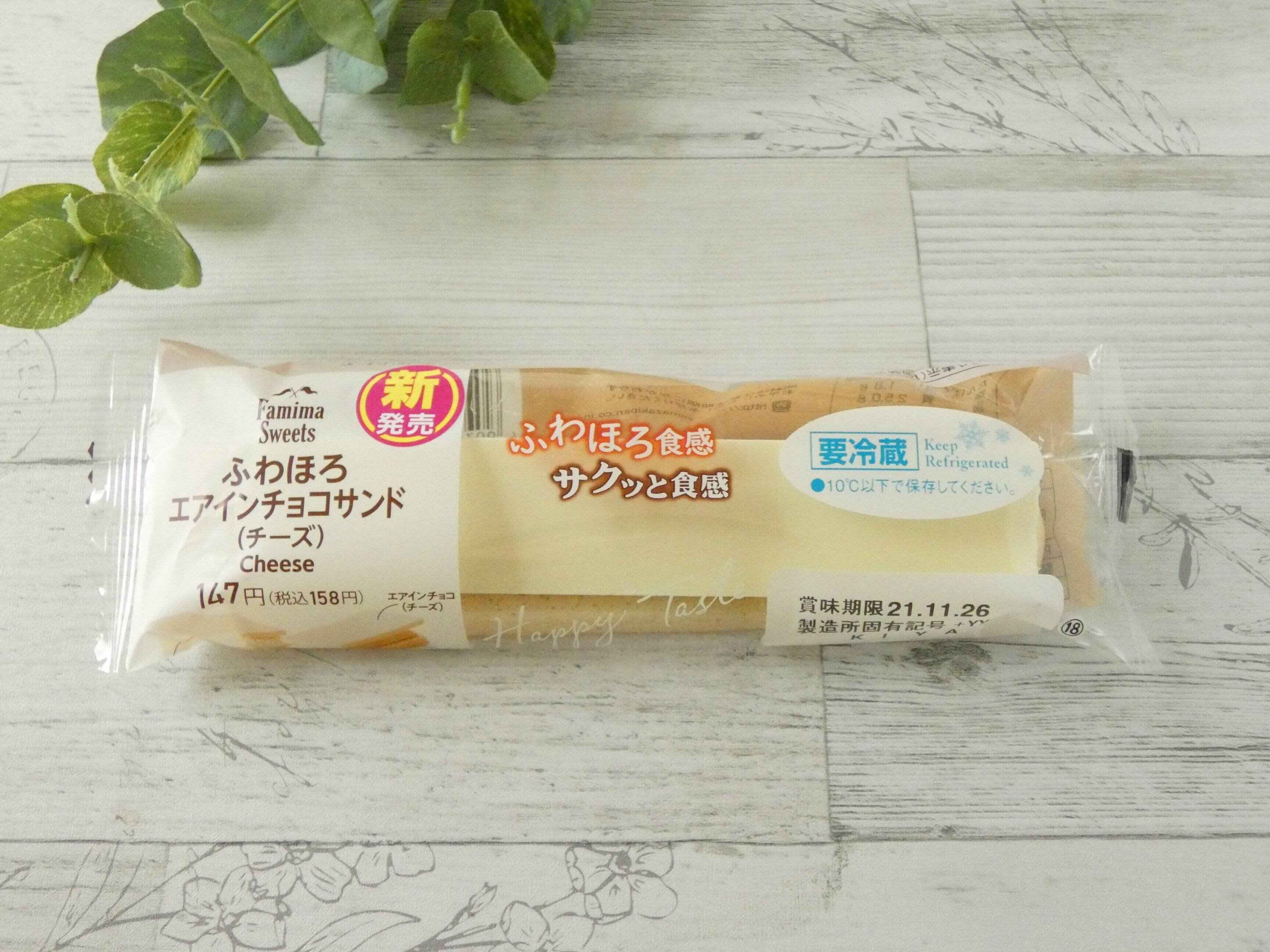 ファミリーマート新発売「ふわほろエアインチョコサンド(チーズ)」は158円。