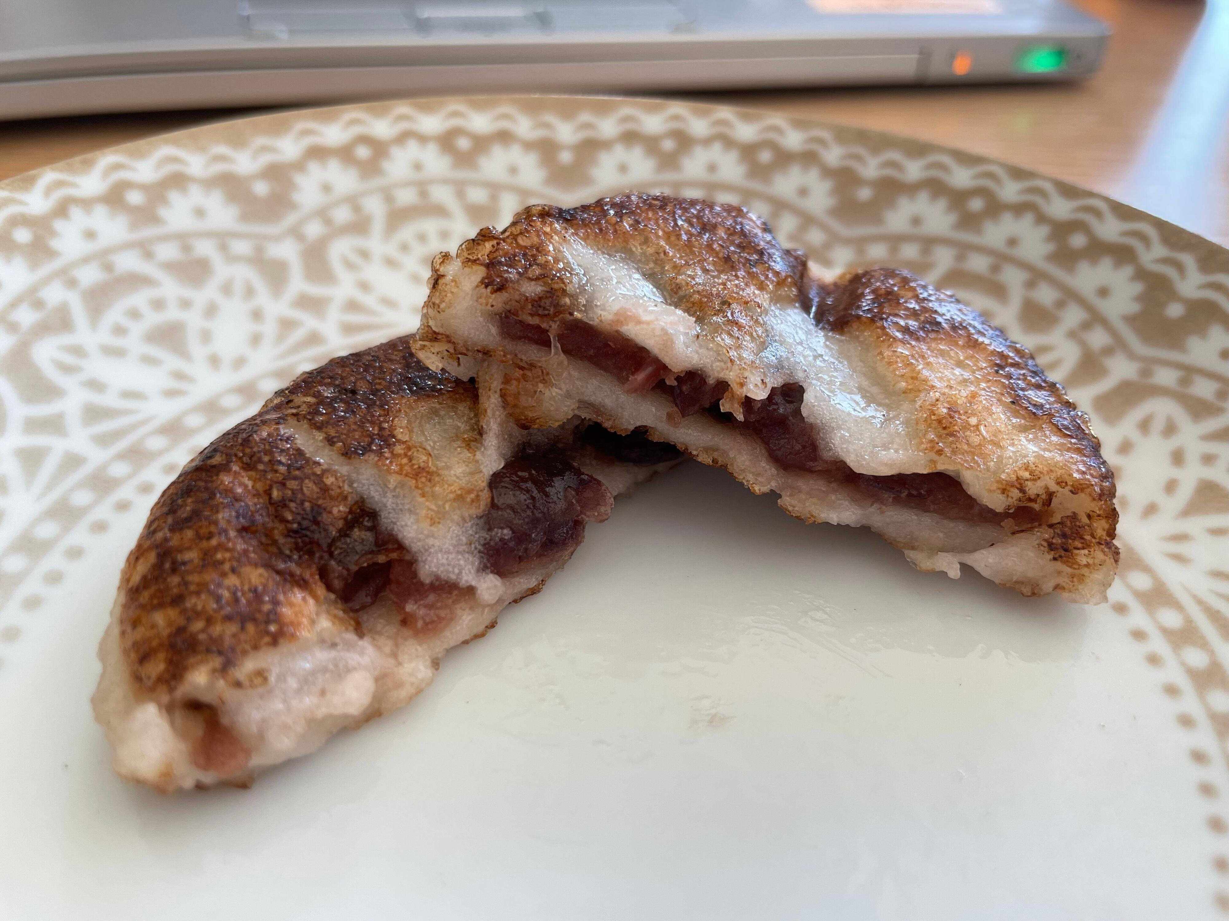 お餅のおこげの固さ&内側の柔らかさ、つぶあんの甘さ。油で焼くことで、ややジャンキーさも加わり、非常に美味しいです!!