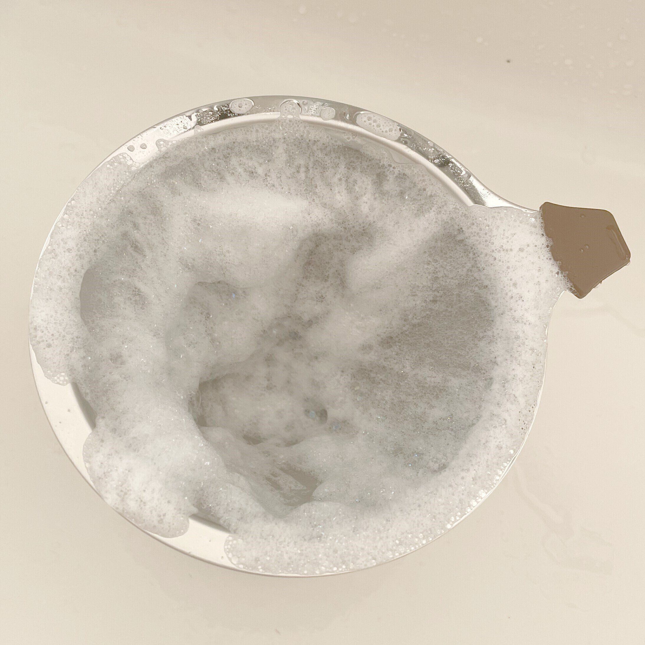 粉全体が浸る程度に熱湯を注ぎ少しの間蒸らしたら、熱湯を5~6回に分けて注ぎます。