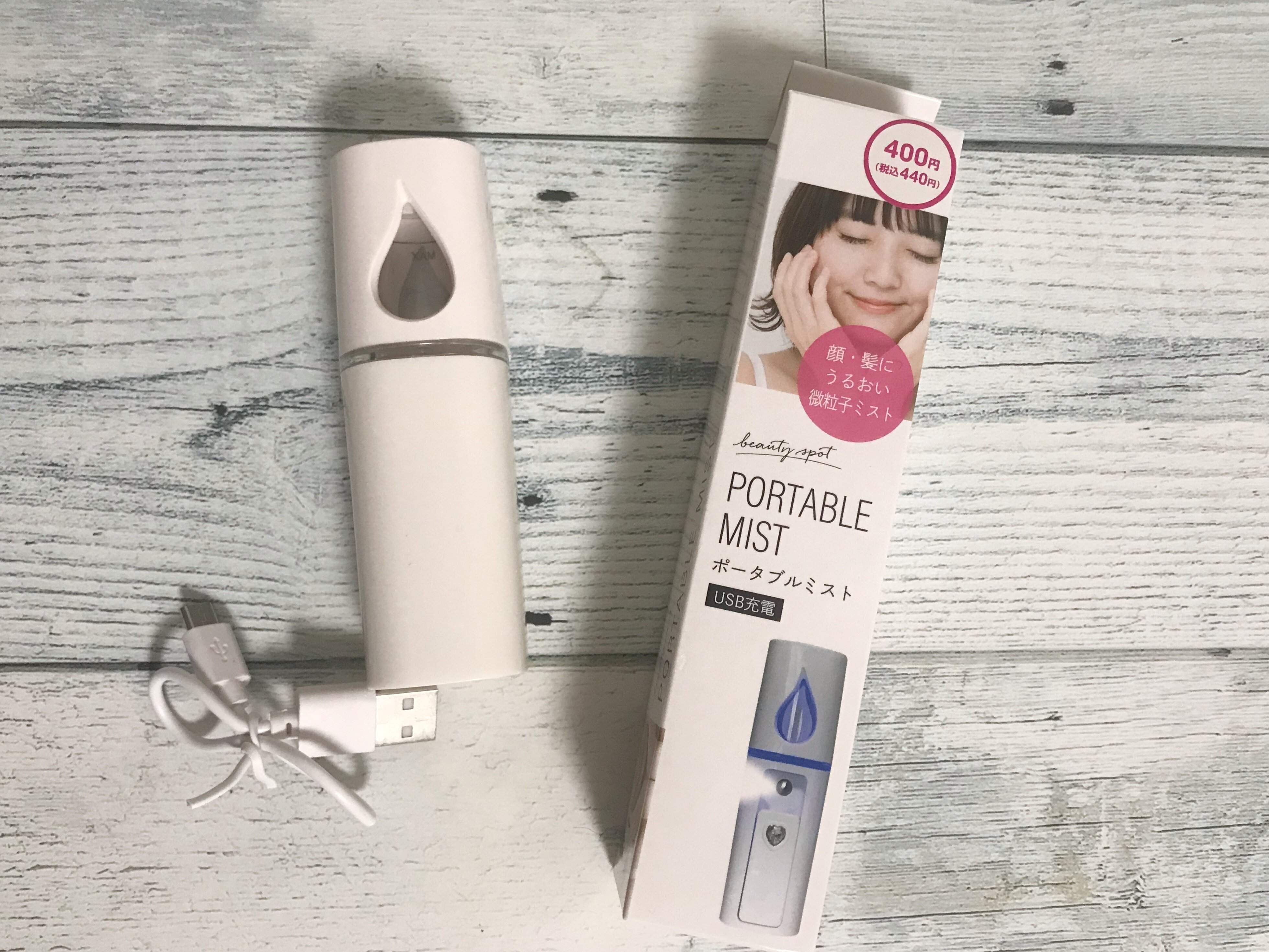 冬に向けて購入したアイテム2つ目は「ポータブルミスト」(440円)。USB充電タイプなので電池を別に用意する必要がないのがお気に入りのポイントです。