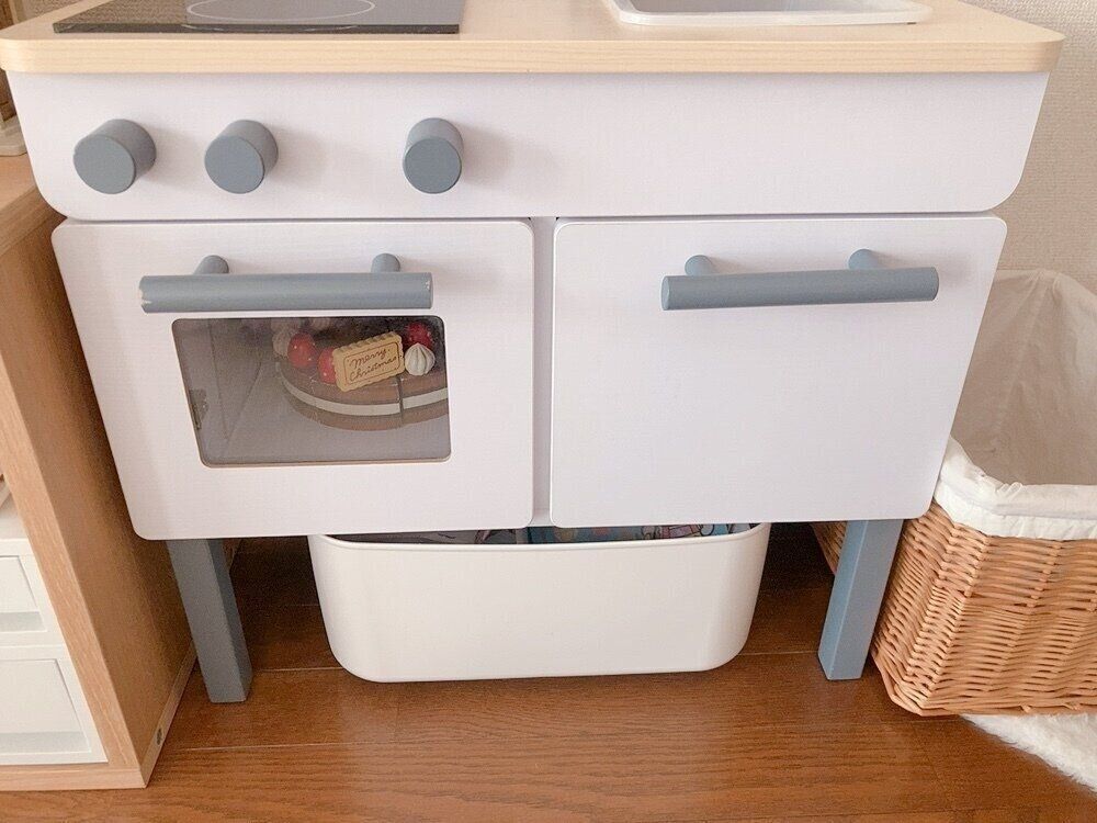 底に100円ショップのキャスターをつけることで、子どもでも軽々引き出すことができます。中身が重たいものの場合もこのような使い方がおすすめです。