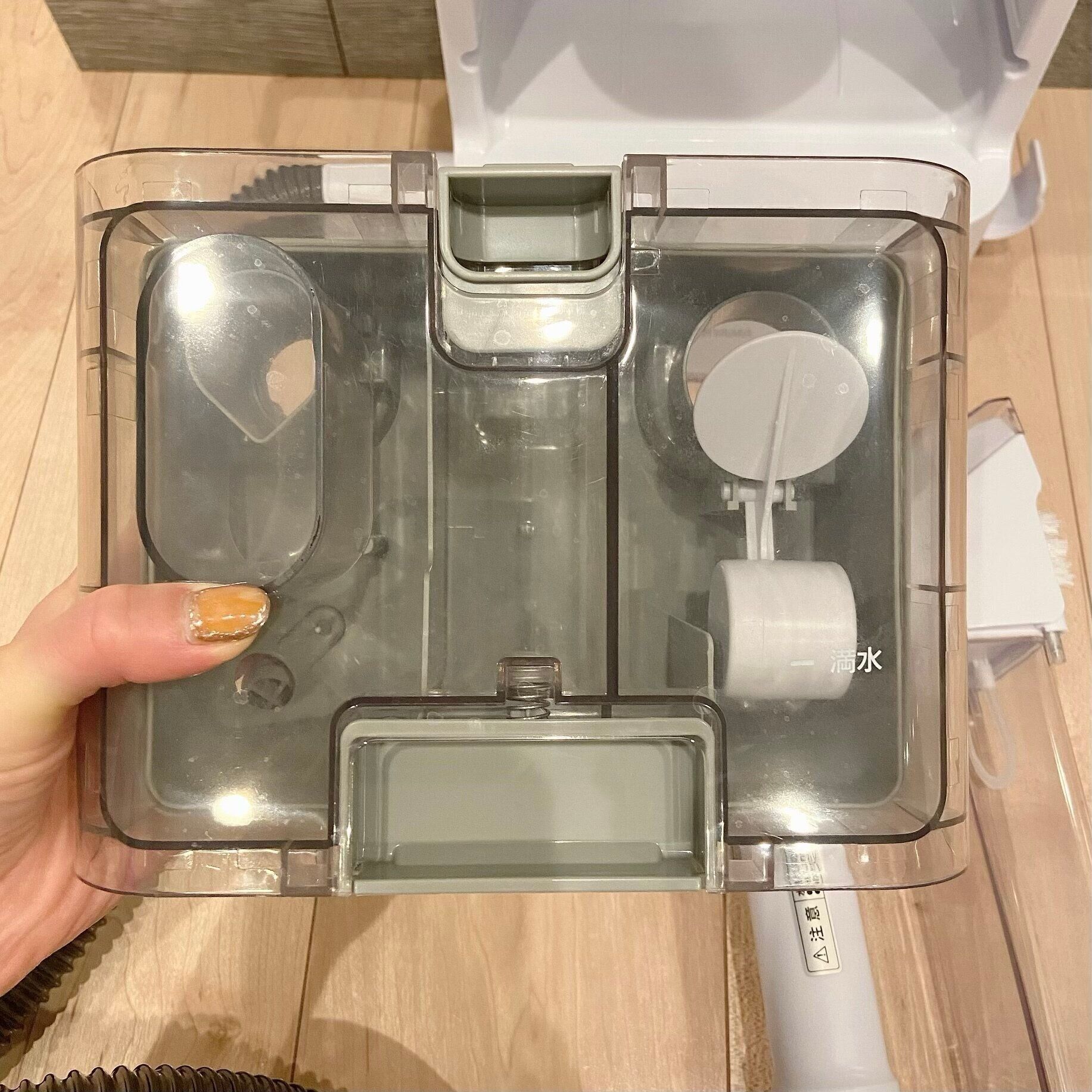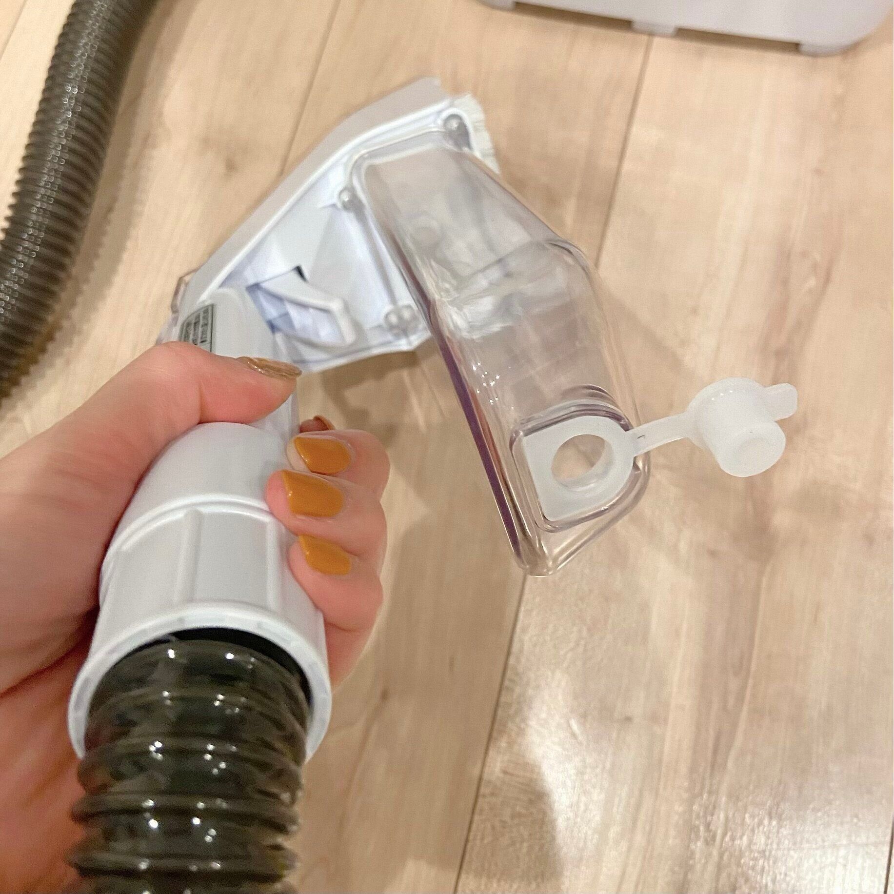 リンサークリーナーを使ったあとは、回収タンクを取り外して、手持ち部分やホースも分解して丸洗いできます。かなりの汚れが付いているので、しっかり洗って乾燥させることが大事。