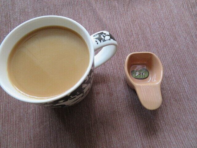 カフェオレとスプーンの色がよく似ているのでテンションが上がります。