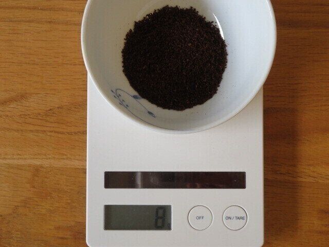 公式サイトの説明を信じて、まずはすりきり1杯分のコーヒーの重さを量ってみました。