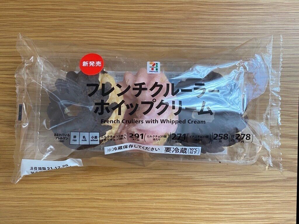 12月21日購入 1個93円のお得なパック!「フレンチクルーラーホイップクリーム」