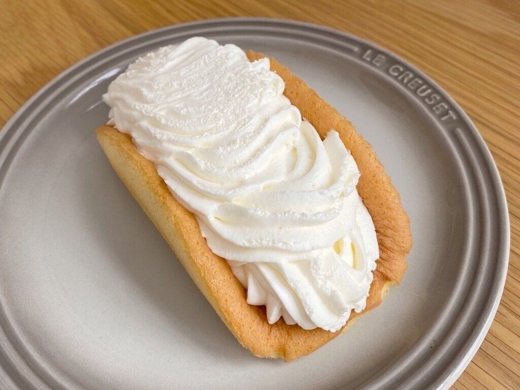 ホイップクリームは口に入った瞬間にしゅわぁ~と消えてなくなる驚きの食感です。程よい甘さで中心に入っているチーズクリームの酸味とよく合います。