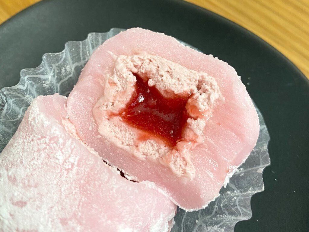 ミルキーで優しい甘さのいちごクリーム、甘酸っぱいベリーソース、対照的な味わいですがそれぞれのイチゴの味わいを楽しめ、大福生地ともよく合っています。