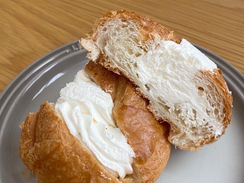表面をしっかりと焼き上げたデニッシュ生地にたっぷりとホイップクリームが絞られています。