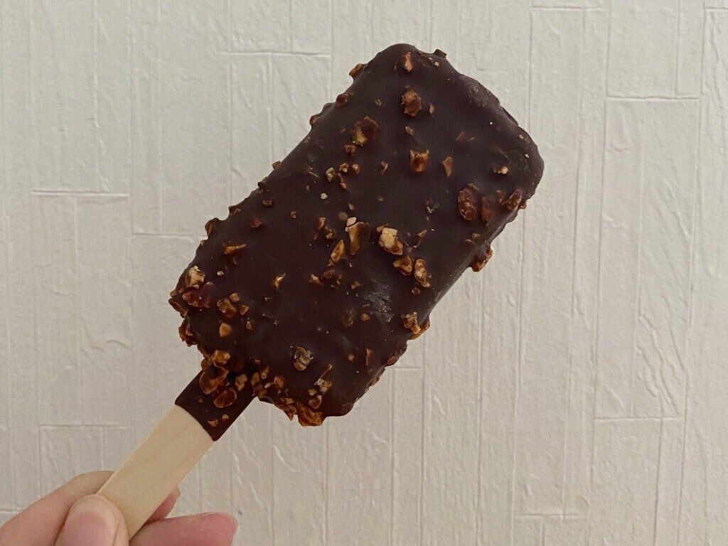 バニラアイスは口どけよくスーッと溶けていき、口の中にチョコレートだけ残るところがチョコ好きにはたまりません。