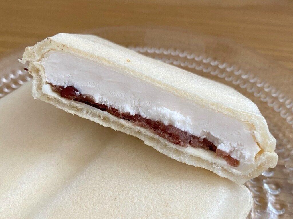 モチっとした食感の生地は米粉の風味が豊か。あずきはしっかりとした風味と粒感があり、上品な甘さは和菓子好きにはたまりません。口どけなめらかなアイスはミルキーで、あずきと最中皮ともよく合います。
