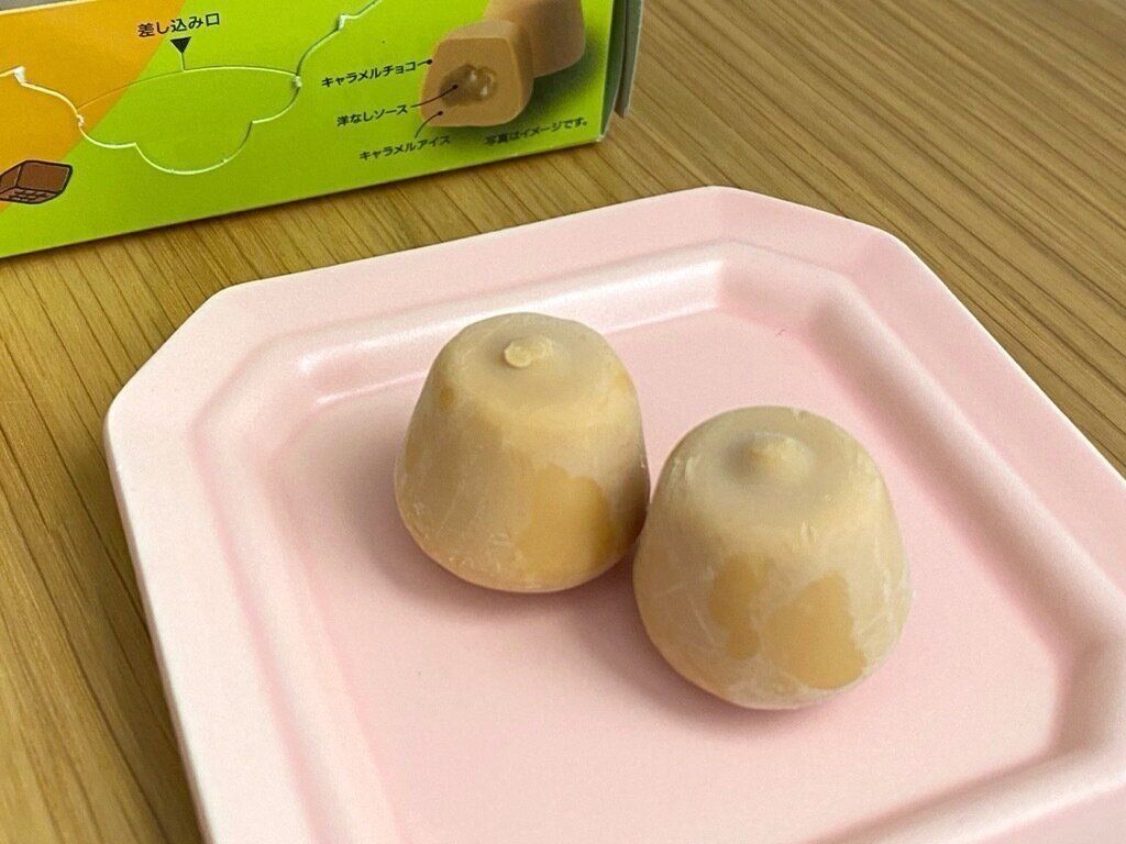 洋梨ソース入りのキャラメルアイスをキャラメルチョコでコーティングした一口サイズのアイス。