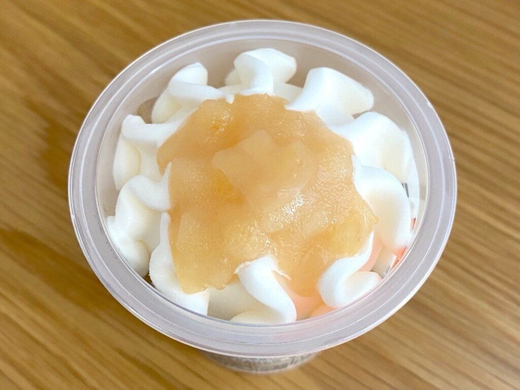 見た目はシンプルですが、食べてみるとアイスが2層構造になっていて2つのリンゴの味わいを楽しめます。