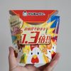 パッケージ自体もビッグサイズ、レジ前ケースの中でもひときわ目立ちます。1粒で3つの味。衣はレギュラーで、中はレッド&チーズということですが、香りはほぼチーズです。レッドの辛さもチーズのまろやかさにおされて控えめながらも確かに感じられました。