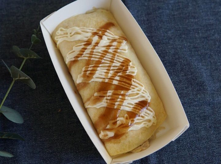 ダンピンとは台湾式たまごクレープのことで、台湾では朝食として食べられることが多いそうです。厚めでもちもち食感の白い生地、その内側には玉子らしき黄色い層が。具材はツナマヨとたっぷりキャベツでボリューミー。一見、お好み焼きのように見えますが、ソースの味は控えめ。その分、具の味をしっかりと感じることができます。