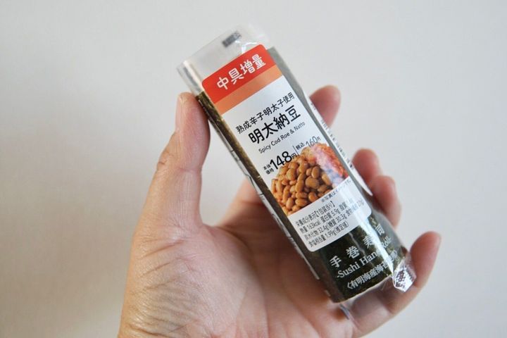 極小粒納豆を使用した定番の納豆巻に、ピリッと辛い明太子が添えられています。