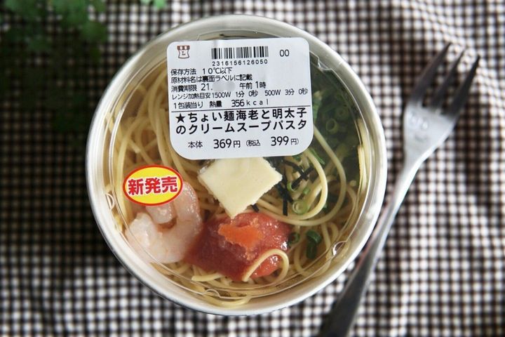 量は控えめで、食が細い方や他のグルメと一緒に食べたい方にも人気なちょい麺シリーズから、海老と明太子のクリームスープパスタが発売されました。