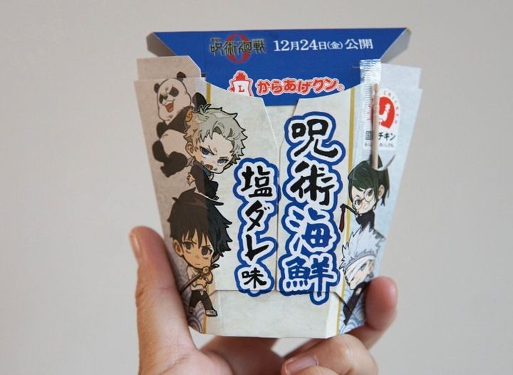 12月24日に「呪術廻戦 0」が劇場公開される、週刊少年ジャンプで大人気連載中の「呪術廻戦」タイアップ商品。パッケージに施された主要キャラクターのイラストが可愛いです。あさりと帆立の貝のうまみをベースに海老エキスと魚醤でコクを加え海鮮感を表現したこの商品。口の中に入れると帆立っぽい海鮮の風味を感じて、からあげなのに・・・と、不思議な感覚に襲われました。
