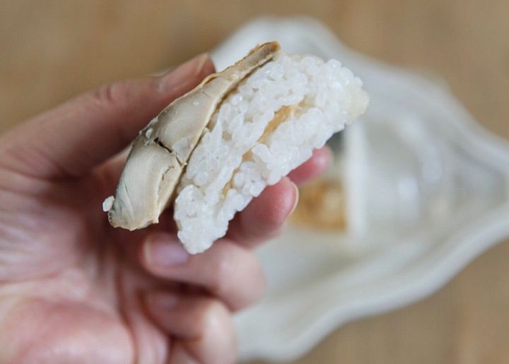 甘しょっぱいしょう油たれが牡蠣とその周りのごはんに染みて、金しゃりおにぎりならではの絶妙な加減の塩とあわさりごはんだけでも美味。牡蠣はふっくらと大きめサイズ。醬油漬にされて旨味がぎゅっと濃縮、ごはんと共にもぐもぐ噛みしめるたびに旨味が口の中を駆け巡り幸せを感じました。