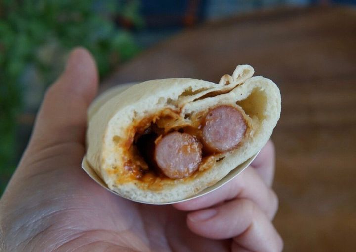 割って見ると、とろっとしたチーズとゴロッとしたベーコンがこんにちは。スモーク調理の代表格、チーズとベーコンの組み合わせがあわないはずがありません。グラタンみたいなマイルド味を想像していましたが、想像以上にスモークの香りが強く、ワインに合いそうな大人向けの中華まんだなと感じました。