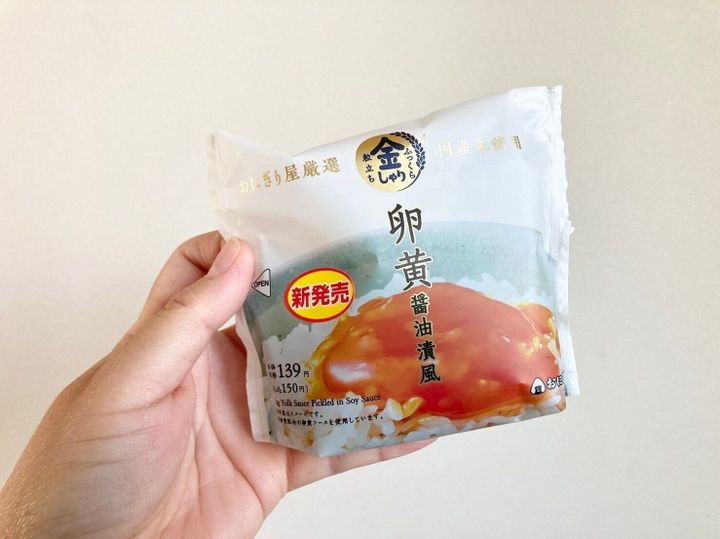 2021年11月のリニューアルで新たに金しゃりおにぎりシリーズの定番に加わりました。プレーン味と醤油味の2種の卵黄を使用して味のコントラストをつけ、まるで専門店かのような卵黄醤油漬の味わいを再現しています。