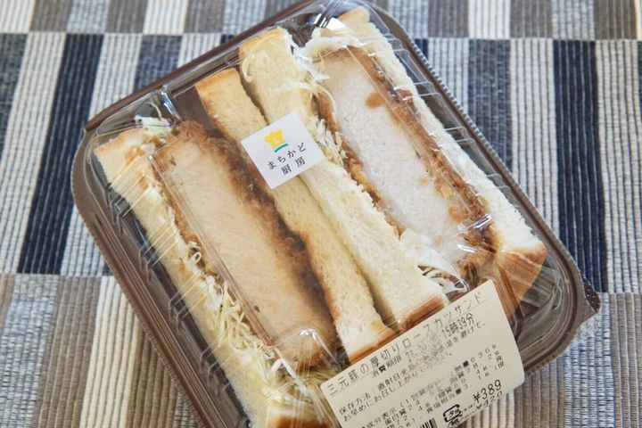 - とにかく厚くてジューシー「三元豚の厚切りロースカツサンド(とんかつ まい泉監修ソース使用)」