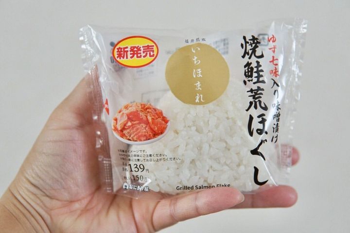関東・甲信越、中部、近畿地区の23都府県限定で販売されているのが、福井県が6年の歳月をかけて開発したブランド米「いちほまれ」を使用したおにぎり2種。「焼鮭荒ほぐし」と「塩にぎり」