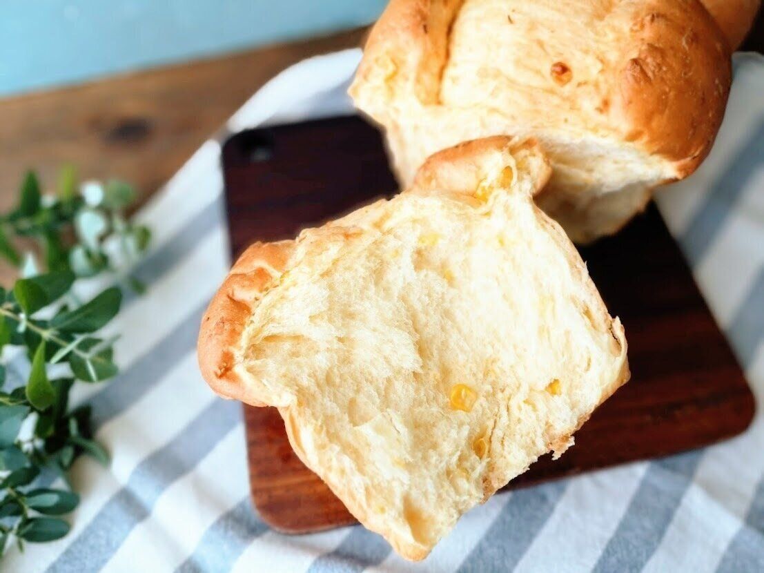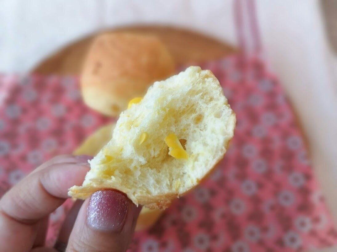 コーンの粒も一緒に練り込まれ焼き上げられています。