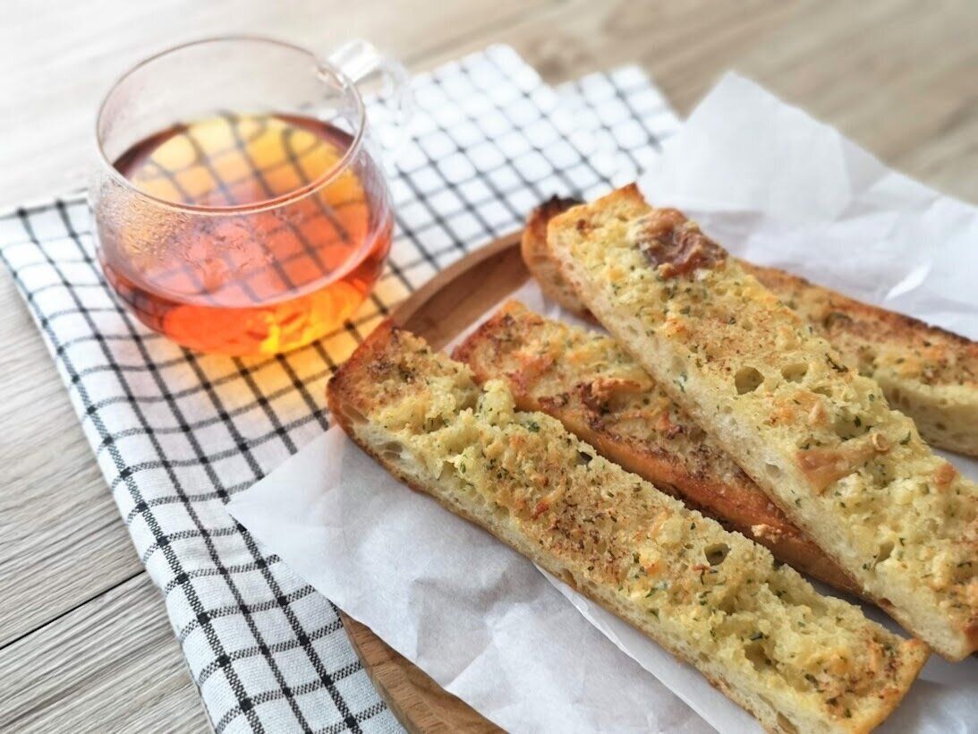 少し硬めのパンに、じんわりと染み込んだガーリックバターが、噛みしめるたびに溢れてきて・・口いっぱいにガーリックバターのうまみが広がります。