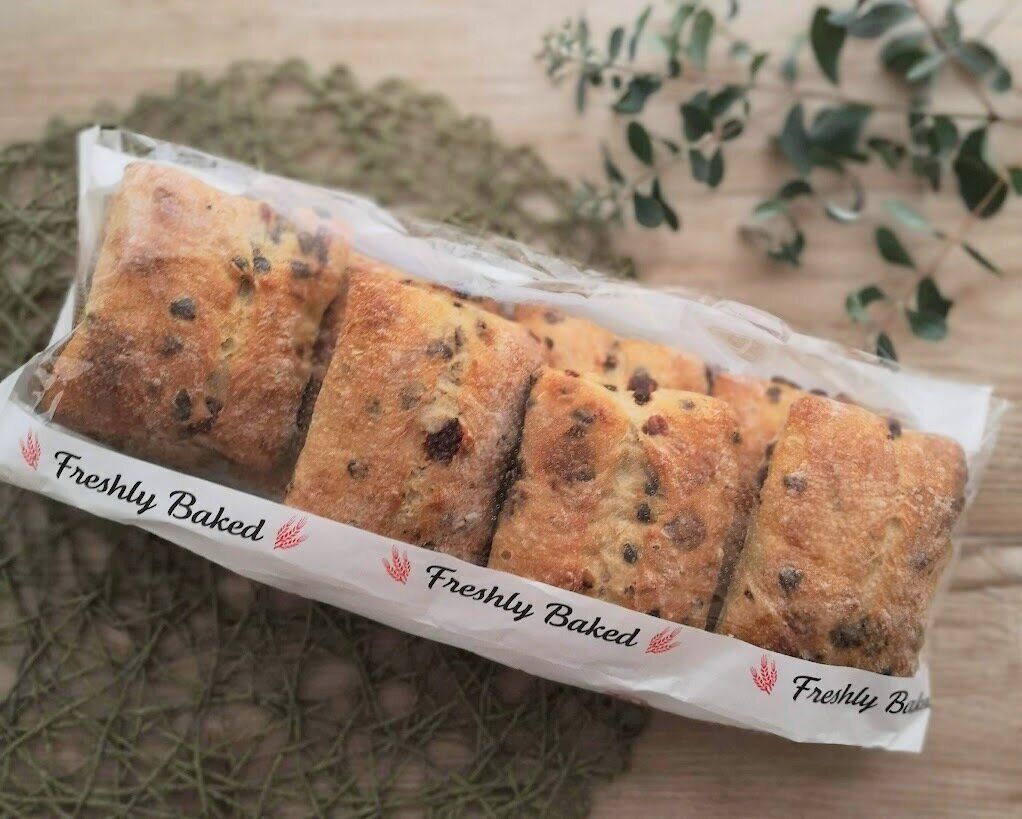 チョコチップとクランベリーがたっぷり入り、外側はフランスパンのようなハードな食感。