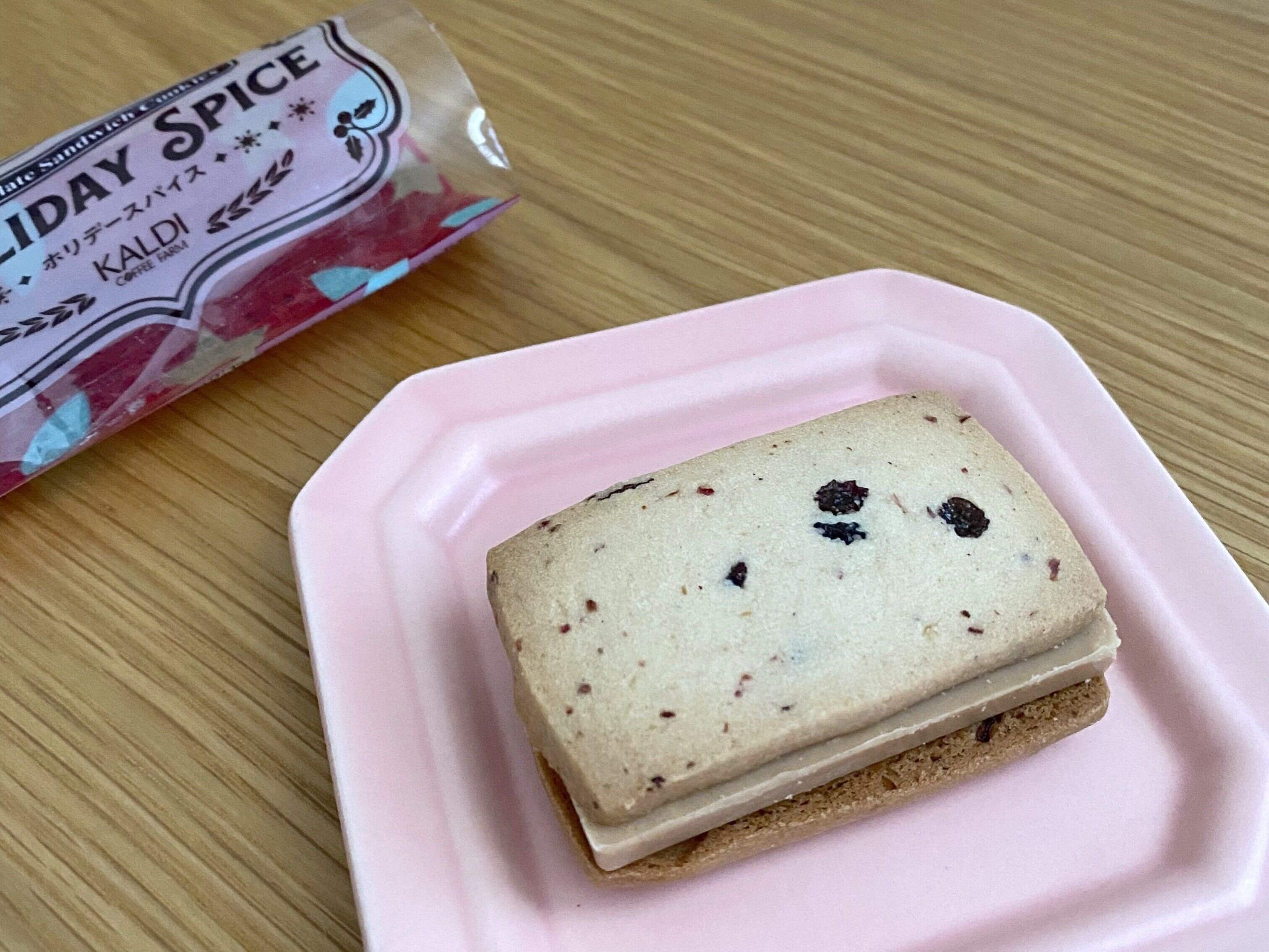 ドライフルーツが入ったサクサククッキーと厚みのあるアーモンドチョコレート、シナモン、ナツメグ、カルダモンなどのスパイスが絶妙にマッチ!